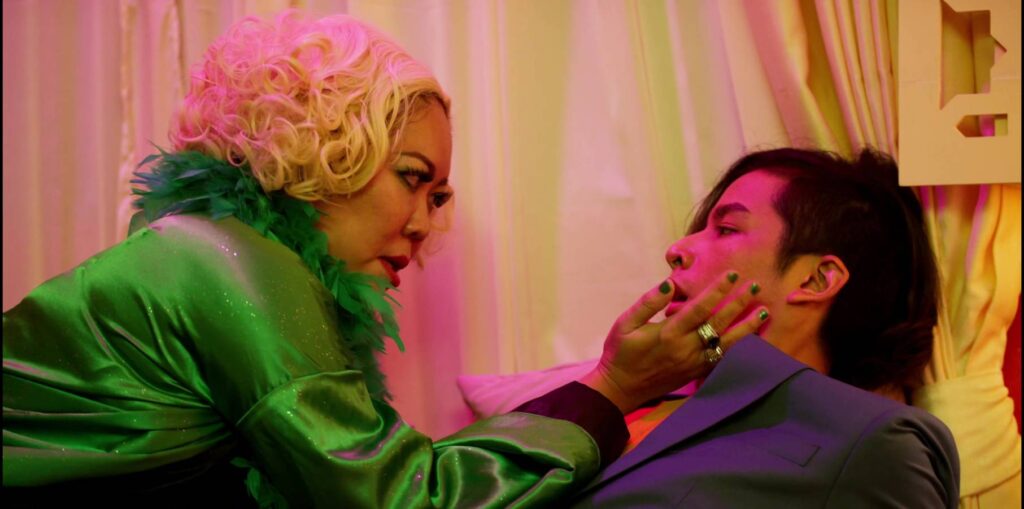 ส่วนฉากที่ยาก และเกร็งมากๆ เลยก็คือ ฉากที่เข้ากับ พี่หยา (จรรยา ธนาสว่างกุล) ครับ เพราะในซีนนั้นเราต้องไปหาความลับบางอย่าง แต่เหมือนเราโดนหลอกไป จริงๆ มันเป็นฉากที่สนุกด้วย แค่เราเกร็งมากกว่า คือเราเกรงใจเขา เราไม่รู้ว่าเราจะเล่นได้ดีมั้ย และพี่หยาก็เป็นนักแสดงที่เก่งมากๆ ในฉากเราต้องเข้าไปในห้อง เพื่อจะล้วงความลับจากเขา แต่เขากลับหลอกเราไป เพื่อจะกินตับเรา (หัวเราะร่วน) ก็เลยจะมีการยื้อยุดฉุดกระชากโดนดึงกางเกง ก็ตลกดีครับ เราไม่ค่อยเห็นแบบนี้เท่าไหร่ มีผิดคิวด้วย คือพี่หยาจะต้องดึงกางเกงผม แล้วคือมันหลุดจริงๆ กางเกงในก็หลุด (หัวเราะ) ก็เลยเทคใหม่ ตอนนั้นมันตลกมาก อยากให้ดูฉากนี้กันครับ สนุกมาก”