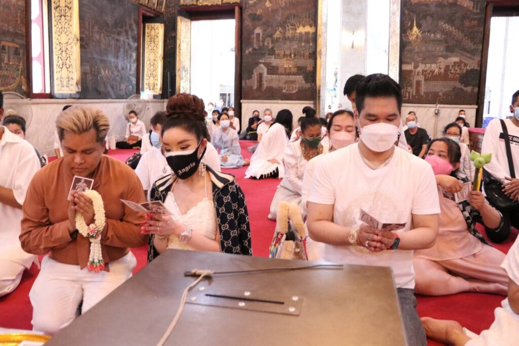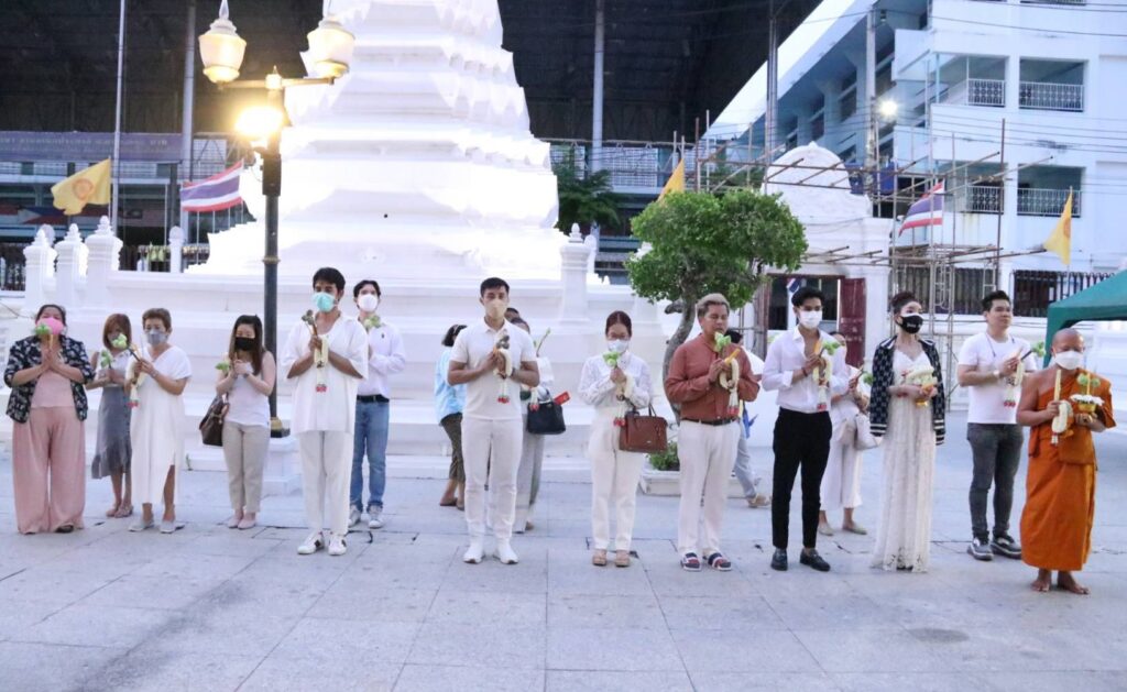 โดยมีเหล่านักแสดงมาร่วมสวดมนต์และเวียนเทียน อาทิ ฮันนี่-ณภัค มุทธาเสถียร ผู้รับบท นางวิสาขา มหาอุบาสิกา ร่วมด้วย ก้อง–กิตติ์ลภัส อิสรการกิตินันท์ , สิริภัสร หมวดอ่อน, ณธีพัฒน์ ถิระไชยบูลย์ (ธีร์) , รัชดาภรณ์ เกตุเทศ และ กษิดิ์โภคิน แกว่นเขต(หนุ่ม) วีเจ Star TV รวมทั้ง วลงกรณ์ จับใจ ผู้กำกับฯ และยังได้รับเกียรติจาก คุณชาคริต สุวรรณมาลี CEO บริษัท Big Lion Corporation ผู้สนับสนุนซีรีส์ธรรมะเรื่องนี้ให้เกียรติร่วมเวียนเทียนกับเหล่านักแสดงด้วย โดยได้รับความเมตตาจาก พระครูปลัดธีรวัฒน์ (องอาจ ฉนทธมโม) ผู้ช่วยเจ้าอาวาสวัดระฆังโฆสิตารามวรมหาวิหาร ผู้นำพิธีสวดมนต์นำขบวนในการเวียนเทียน และมอบเหรียญที่ระลึก “สมเด็จโต” ให้กับผู้จัดฯ และนักแสดงในครั้งนี้ด้วย!!!