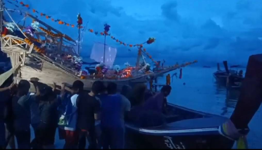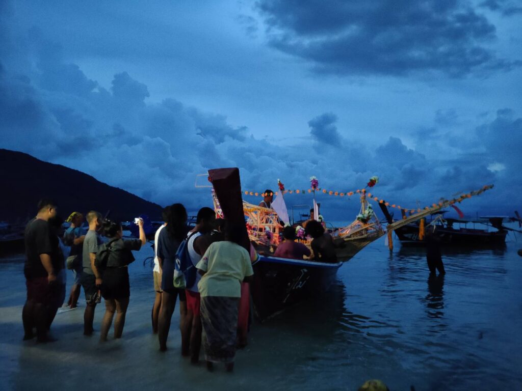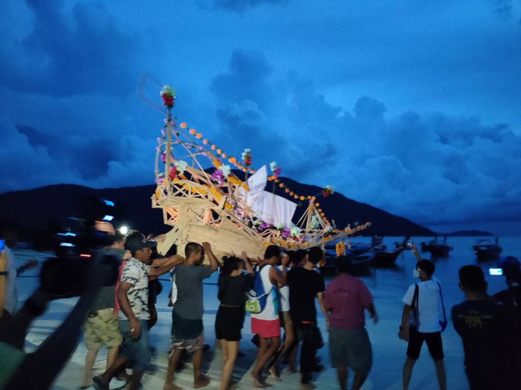 วันนี้ 18 พ.ค.2565 บรรยากาศหน้าโรงเรียนบ้านเกาะอาดังบนเกาะหลีเป๊ะตำบลเกาะสาหร่าย อำเภอเมือง จังหวัดสตูล บรรยากาศยามหัวรุ่งต่างมีนักท่องเที่ยวชาวไทยและชาวต่างชาติและกลุ่มชาวเลอูรักลาโว้ยมาร่วมกันรำรอบเรือที่ได้สร้างจากไม้และเป็นการรำลึกขอขมาและบูชาซึ่งในวันนี้จะมีการนำเรือล่องลอยสู่การท้องทะเลชาวเลรักลาโว้ยเชื่อกันว่าเป็นการปัดเป่าไล่สิ่งไม่ดีสะเดาะเคราะห์ออกจากตัวตนและบนเกาะแห่งนี้ออกไป