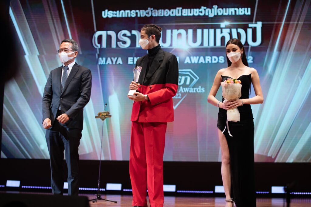 สองนักแสดงจากซีรีส์แอ็คชั่นคอมเมดี้สุดฮา “Mafia The Series: Guns & Freaks (มาเฟียเดอะซีรีส์ ปืนกลและคนเพี้ยน) ค่ายสแล็ปมอนสเตอร์ มีมี่-กัลยรัตน์ ขัติยะ และ รีวอร์ด-จิรัฎฐ์ อาคาสุวรรณ มีโอกาสร่วมงานเดินพรมแดง และเชิญรางวัลใน MAYA ENTERTAIN AWARD2022 ณ ศูนย์วัฒนธรรมแห่งประเทศไทย เมื่อค่ำคืนที่ผ่านมา โดยหนุ่มรีวอร์ดมาในชุดสูทหรูดำแดง ส่วน สาวมีมี่ นั้นมาในชุดดำสนิทที่ดูหรูหรามากๆ แถมยังออร่าพุ่ง และขาวได้ใจจนเหล่าบรรดาช่างภาพกดชัตเตอร์กันรัวๆ