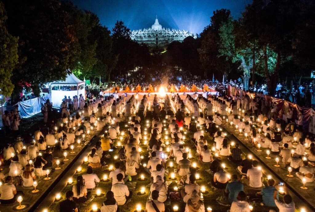 และเมื่อวันที่ 16 พฤษภาคม 2565 สมาคมชาวพุทธอินโดนีเซีย พร้อมด้วยวัดพระธรรมกาย และทุกวัดบนเกาะชวาร่วมกัน จัดจุดโคมประทีป วันวิสาขบูชา หน้าพระมหาเจดีย์บุโรพุทโธเพื่อบูชาพระสัมมาสัมพุทธเจ้า โดยเน้นในการสอนสมาธิเป็นหลัก ก่อนจุดโคมไฟภายนอก และจุดความสว่างภายใน ด้วยการเจริญสมาธิภาวนา ซึ่งในปีนี้จัดตรงกับวันที่ 16 พฤษภาคมตามคำเชิญของสมาคมชาวพุทธชื่อ “Walubi” หลังจากที่ไม่จัดมา 2 ปี เนื่องจากสถานการณ์การแพร่ระบาดของเชื้อไวรัสโควิด19 โดยมีการปิดถนนให้ริ้วขบวนพาเรดเดินผ่าน ระยะทางมากกว่า 5 กิโลเมตร สิ่งที่น่าตื่นตาใจชาวอินโดนีเซียหลายศาสนา เช่นศาสนาอิสลาม ต่างมายืนริมถนนเพื่อคอยชมริ้วบวนพาเรด ในวันสำคัญทางพระพุทธสาสนา วันวิสาขบูชาตลอดเส้นทาง