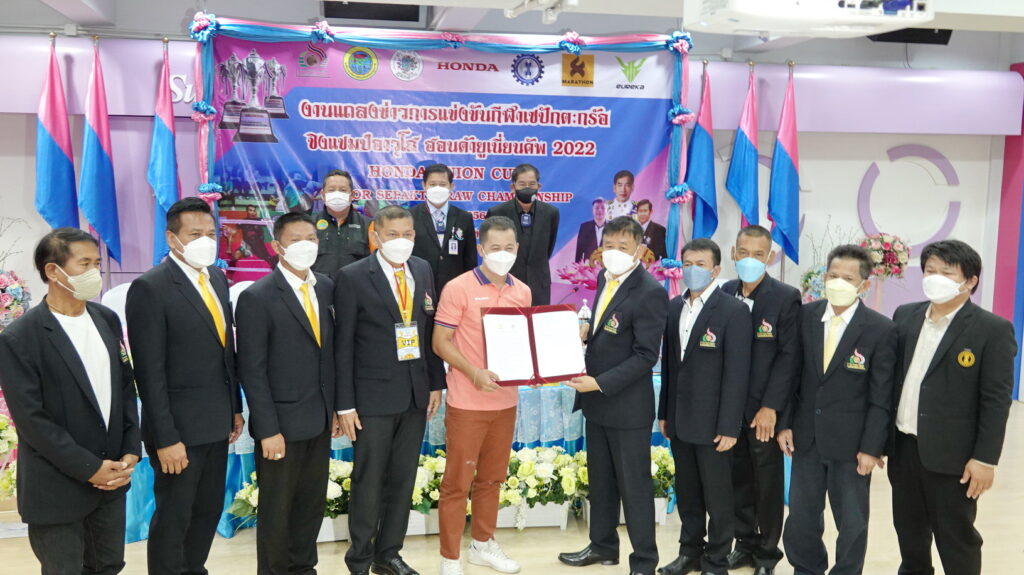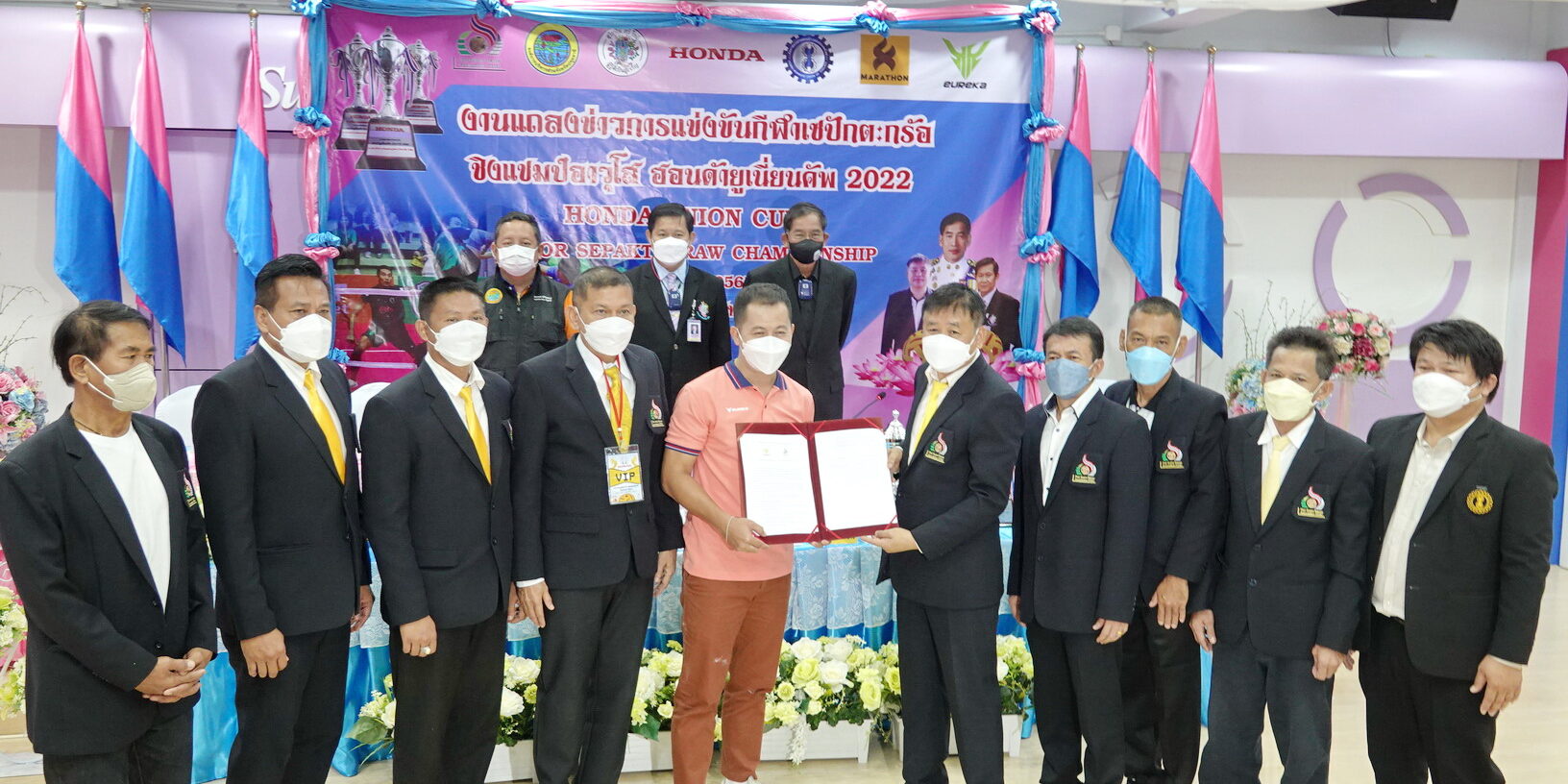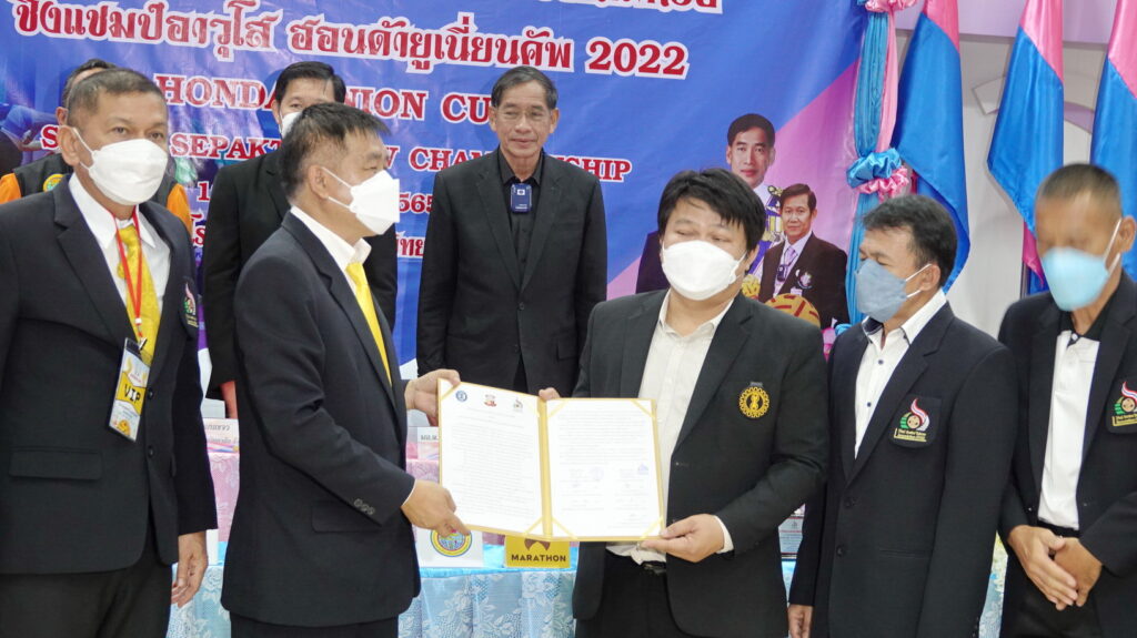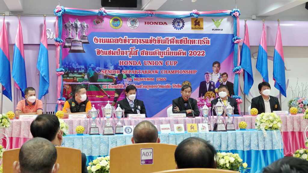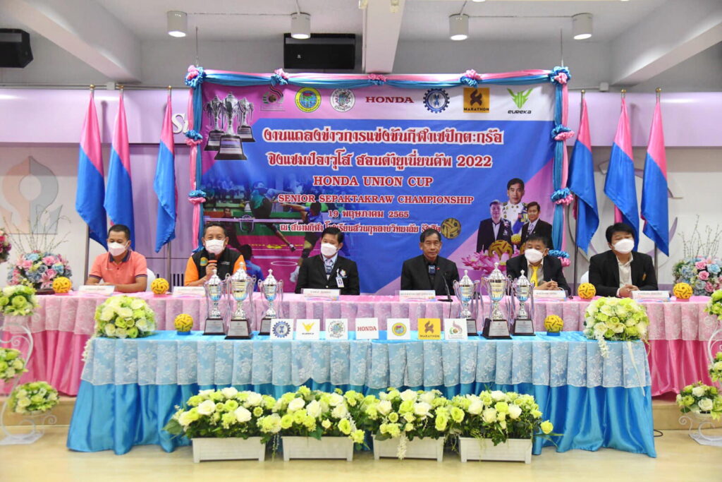 บรรยากาศการแถลงข่าวมีการลงนามบันทึกข้อตกลงในการสนับสนุน (MOU) 1.ระหว่างสหภาพแรงงานฮอนด้าแห่งประเทศไทย กับ สมาคมกีฬาดะกร้ออาวุโสไทย 2.ระหว่างบริษัทยูเรก้า(ประเทศไทย) จำกัด กับ สมาคมกีพาคะกร้ออาวุโสไทย 3.ระหว่างบริษัทยูเรก้า(ประเทศไทย) จำกัดกับ สโมสรตะกร้อฮอนด้ายูเนี่ยน เพื่อร่วมกันสนับสนุนกีฬาตะกร้ออาวุโสไทย ส่วนการแข่งขันกีฬาเซปักตะกร้อ ชิงแชมป์อาวุโส ฮอนด้ายูเนี่ยนคัพ 2022 ระหว่างวันที่ 28 – 29 พฤษภาคม 2565 ที่โรงเรียนสวนกุหลาบวิทยาลัยรังสิต อ.คลองหลวง จ.ปทุมธานี สำหรับเงินรางวัลทุกรุ่น ทีมแชมป์จะได้รับ 1 หมื่นบาท ส่วนรองแชมป์รับ 5 พันบาท และอันดับ 3 ครองร่วมกันรับเงิน 2.5 พันบาท พร้อมถ้วยรางวัล โดยแบ่งการชิงชัยออกเป็น 4 ประเภท ประกอบด้วย 1.รุ่นเยาวชนชาย อายุไม่เกิน 17 ปี (ฟรีไม่มีค่าสมัคร) นักกีฬาต้องเกิดก่อน พ.ศ.2547, 2. รุ่นประชาชนทั่วไป แบ๊กอาวุโส45ปี คู่หน้าโอเพ่น (ตำแหน่งแบ๊กไม่เกิดหลัง พ.ศ.2520 นักกีฬาทีมชาติ, อดีตทีมชาติหรือไทยแลนด์ลีกทีมละ 1 คน)