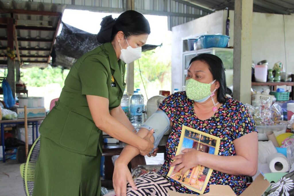 (-)ผบ.ป.9 พัน.9 และภรรยาได้ให้กำลังใจ พร้อมทั้งได้ตรวจสุขภาพเบื้องต้นมารดาของ พลฯวรพลฯ