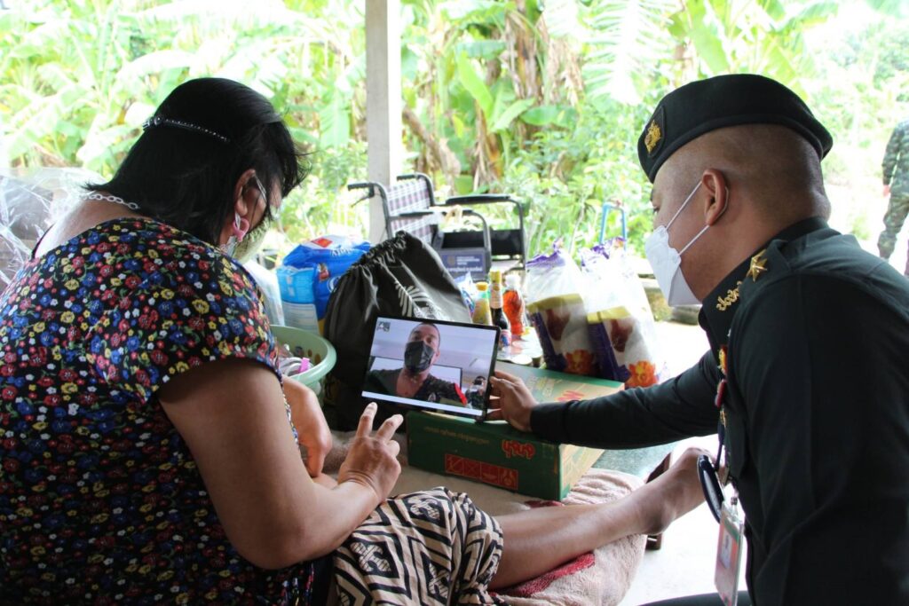 (-)และให้พบปะ ผ่านระบบ Application ZOOM เพื่อให้น้องทหารใหม่และมารดาได้คลายความกังวล พร้อมทั้งมอบเครื่องอุปโภค บริโภค ข้าวสาร อาหารแห้ง ยารักษาโรค แก่มารดาของทหารใหม่ สร้างขวัญ กำลังใจที่ดีแก่ทหารใหม่และญาติ แม้จะอยู่ห่างไกลกัน