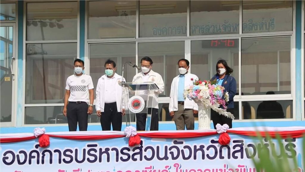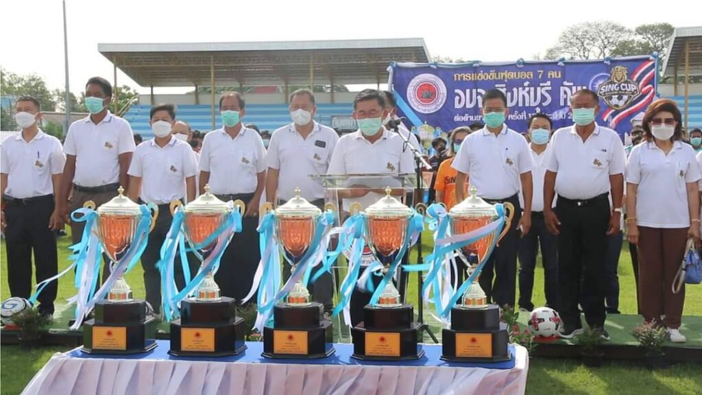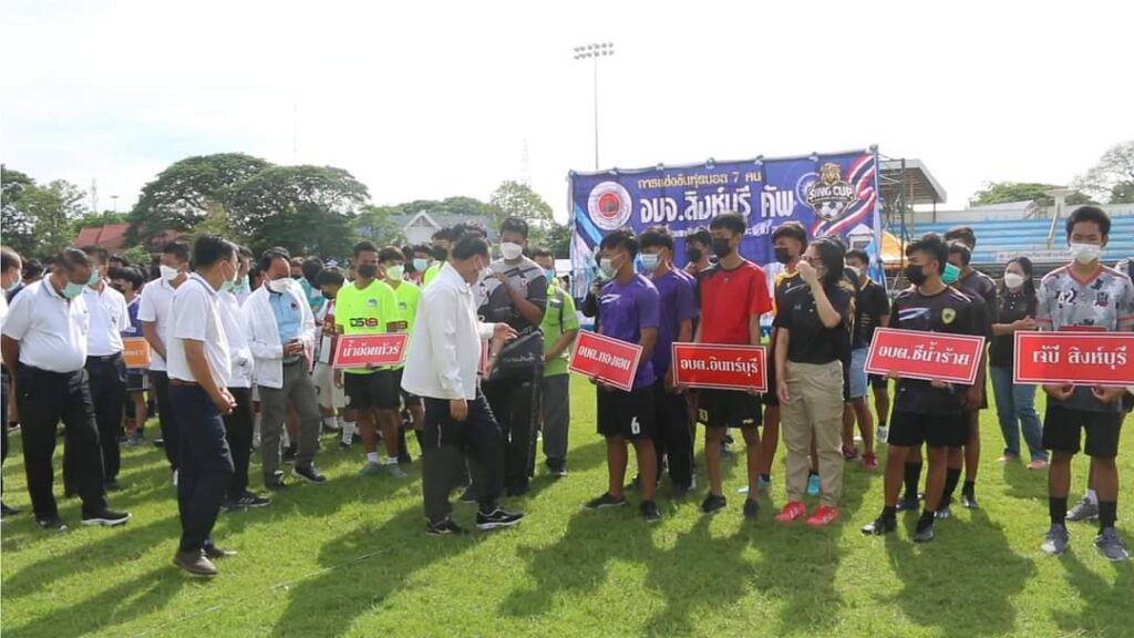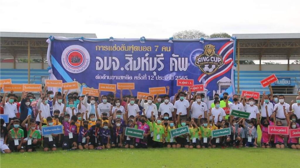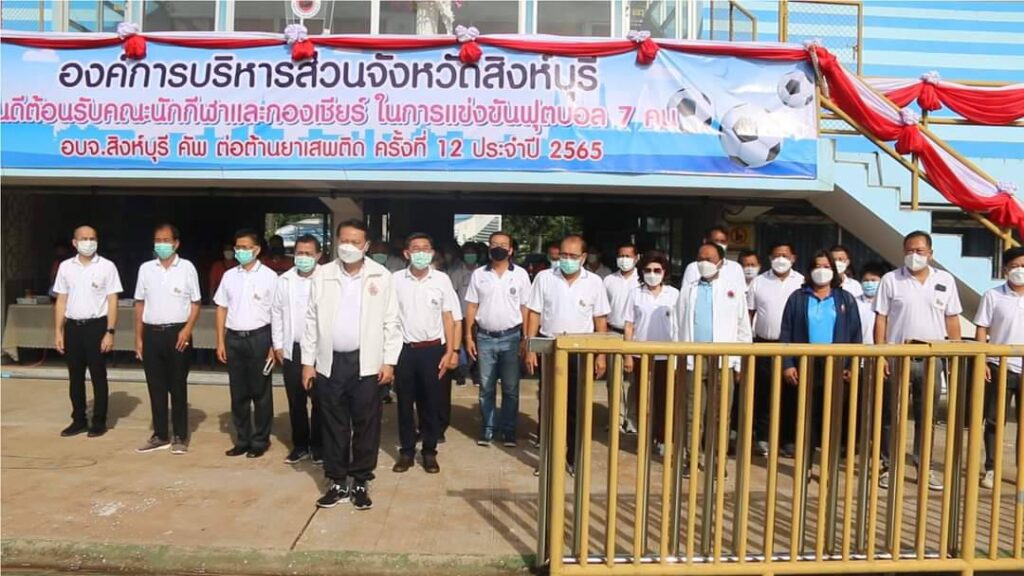 วันที่ 21 พฤษภาคม 2565 เวลา 8.30 น. นายสัมฤทธิ์ กองเงิน รองผู้ว่าราชการจังหวัดสิงห์บุรี เป็นประธานเปิดโครงการแข่งขันฟุตบอล 7 คน อบจ.สิงห์บุรีคัพ ต่อต้านยาเสพติด ครั้งที่ 12 ปี 2565 ณ สนามกีฬาองค์การบริหารส่วนจังหวัดสิงห์บุรี โดยมี นายศุภวัฒน์ เทียนถาวร นายกองค์การบริหารส่วนจังหวัดสิงห์บุรี คณะกรรมการจัดการแข่งขันฯ จัดโครงการแข่งขันกีฬาฟุตบอล 7 คน อย่างต่อเนื่อง โดยมีวัตถุประสงค์เพื่อส่งเสริมให้ยุวชน เยาวชน นักเรียน นักศึกษา ได้พัฒนาทักษะและประสบการณ์ในการแข่งขันกีฬาฟุตบอลได้ใช้เวลาว่างให้เกิดประโยชน์ โดยเฉพาะอย่างยิ่งห่างไกลยาเสพติด ตลอดจนเป็นการเชื่อมความสัมพันธ์ สร้างความรัก ความสามัคคี ปรองดอง สมานฉันท์ ของประชาชนจังหวัดสิงห์บุรี