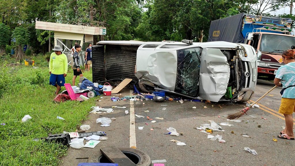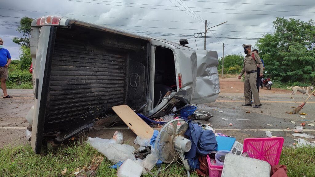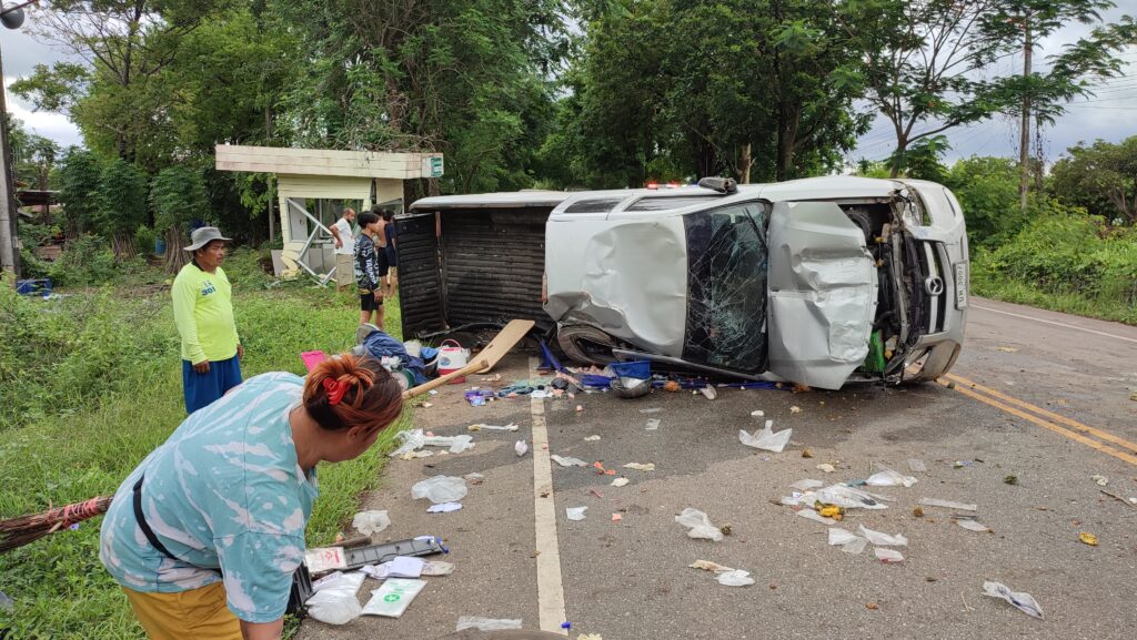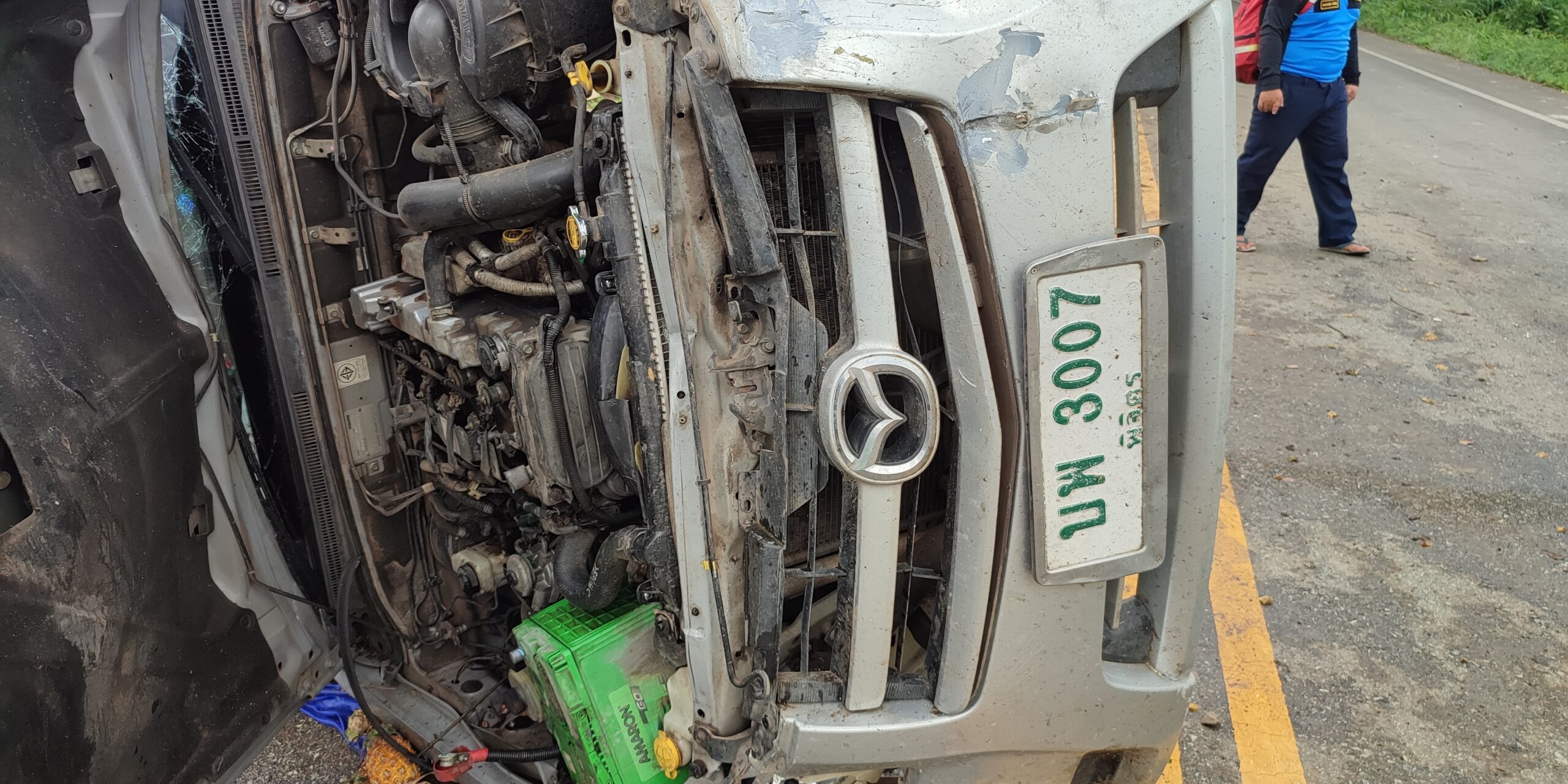 โดยในช่วงเช้าวันนี้ ตนเองและภรรยา ได้ไปขายผลไม้ที่ตลาดหนองยาง อำเภอวังทรายพูน จังหวัดพิจิตร แล้วช่วงบ่ายจะนำผลไม้ไปขายที่ตลาดวันเสาร์ อำเภอวังโป่ง จังหวัดเพชรบูรณ์ ขณะที่เดินทางมาถึงตรงที่เกิดเหตุ ได้ยินเสียงยางหลังรถระเบิด แล้วรถทรงตัวไม่อยู่ จนสะบัดไปชนต้นไม้ 3 ต้นและพุ่งชนป้อมยามประจำหมู่บ้าน จนพังเสียหายยับเยิน
