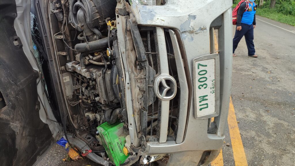 ผู้สื่อข่าวรายงานว่า พ.ต.ต.พชร จันศีรี ร้อยเวรสอบสวน สภ.วังโป่ง จ.เพชรบูรณ์ ได้รับแจ้งเกิดอุบัติเหตุ รถยนต์กระบะยางระเบิด เสียหลักชนต้นไม้ และป้อมยามหมู่บ้าน พังยับ แต่คนขับไม่ได้รับบาดเจ็บหรือมีบาดแผล เชื่อบารมีพระพุทธชินราช วัดพระศรีรัตนมหาราช พิษณุโลกคุ้มครองให้แคล้วคลาด จึงประสานสมาคมกู้ภัยวังโป่งรวมใจ กู้ชีพ กู้ภัย อบต.ท้ายดง พร้อมเจ้าหน้าที่ตำรวจชุดสายตรวจ สภ.วังโป่ง รุดไปให้ความช่วยเหลือ เมื่อไปถึงที่เกิดเหตุ บนถนนสายวังโป่ง-หนองขนาด หมู่ที่13 ต.ท้ายดง อ.วังโป่ง จ.เพชรบูรณ์ พบป้อมยามหมู่บ้าน ถูกชนพังยับเยิน และต้นไม้อีก3ต้น มีรอยเฉี่ยวชน บนถนนพบรถยนต์กระบะ ยี่ห้อมาสด้า แคป สีบร์อนเงิน หมายเลขทะเบียน บพ 3007 พิจิตร พลิกคว่ำขวางถนนหนึ่งเลนส์ โดยตัวรถ มีสภาพพังยับเยินทั้งคัน