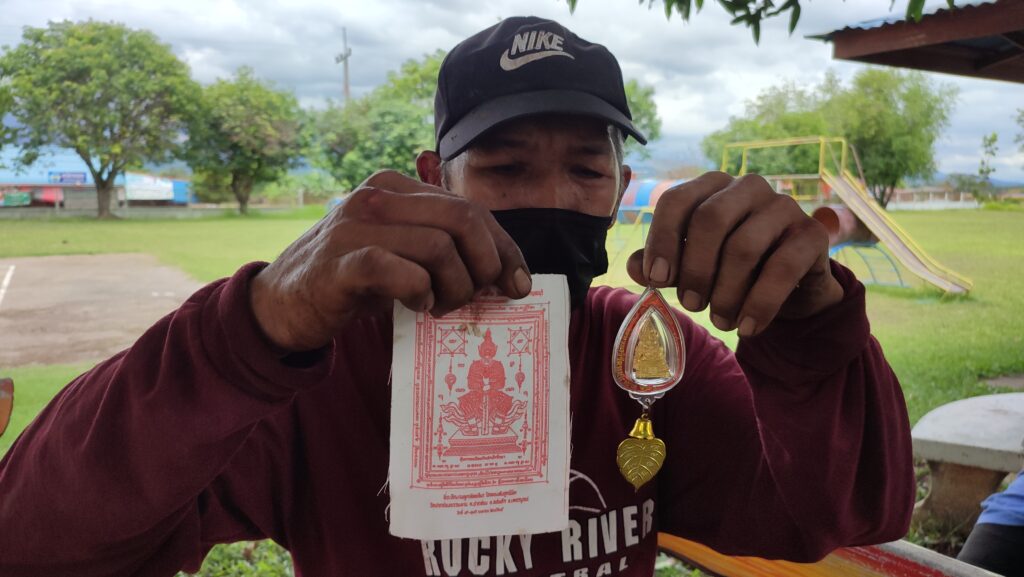 ด้าน นายสุรินทร์ เล่าว่า ตนเองมีอาชีพขายผลไม้ตลาดนัด วันนี้จะเดินทางมาอำเภอวังโป่ง ก็ขับมาเรื่อยๆ แล้วยางหลังก็แตก ซึ่งหลังรถบรรทุกผลไม้หลายอย่าง ทุเรียน สัปปะรด ผลไม้หลายอย่าง ช่วงนั้นตนเองไม่ได้หลับใน เป็นจังหวะขึ้นเนิน ความเร็วประมาณ 60-70 พอยางแตกก็เอาไม่อยู่ รถสะบัด ตอนรถลงข้างทาง ก็ไม่ทันตั้งตัว จำไม่ได้เลยว่าพลิกกี่ตลบ แต่สภาพรถยับเยิน หลังคาบุบ แต่ตนเองไม่ได้บาดเจ็บอะไร มีเพียงภรรยาได้รับบาดเจ็บ เย็บไปทั้งหมด10เข็ม โชคดีที่ไม่เป็นอะไรมาก เชื่อบารมีหลวงพ่อช่วย จะกราบไหว้ทุกครั้งก่อนขึ้นรถ และขอให้ขายของดี
