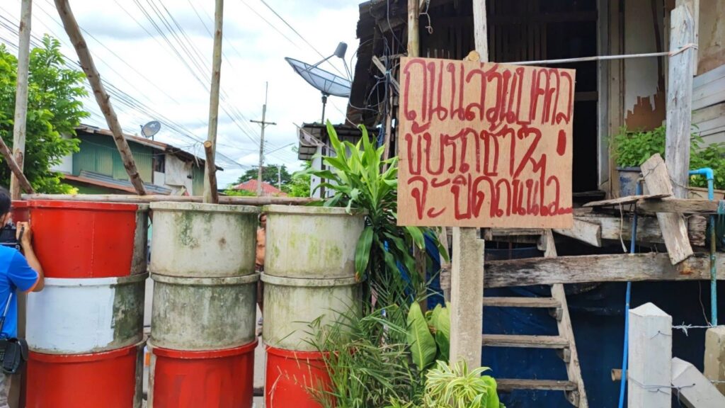 ผู้สื่อข่าวได้เข้าไปพูดคุยสอบถามผู้ใหญ่บ้านหมู่5 นางสาวน้ำเพ็ชร สายชูวงษ์ กล่าวว่า บ้านที่ปิดถนนแจ้งว่าถนนนี้เป็นพื้นที่ในโฉนดของเขา เป็นพื้นที่ส่วนบุคคล และได้ปิดถนนไป ตั้งแต่วันที่19 พ.ค. ที่ผ่านมา ทางชาวบ้านแจ้งว่า สัญจรเส้นทางนี้มากว่า50ปีแล้ว แต่ตอนนี้รถโรงเรียนก็ผ่านไม่ได้ ขนส่งก็ผ่านไม่ได้ ไปทำงานลำบาก รวมทั้งเดือดร้อนไปถึง พระที่บิณฑบาตรผ่านไม่ได้ ต้องเดินอ้อมไกล และเสี่ยงอันตรายด้วยเส้นทางที่สามารถสัญจรได้อีกเส้นนั้นไกลและกำลังก่อสร้างเขื่อนกั้นน้ำ