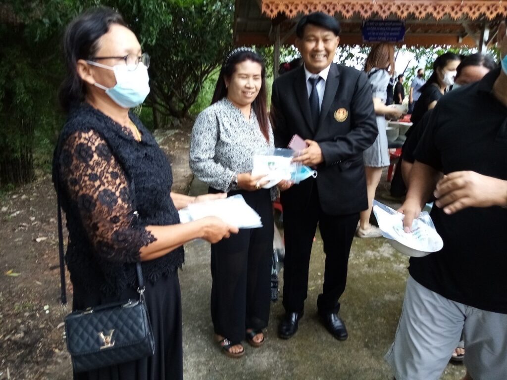“ทั้งนี้ ต้องขอขอบคุณ ห้างร้าน บริษัท ที่ สนับสนุน หน้ากากอานามัย และสเปรย์แอลกอฮอล์ มาแจกให้ กับประชาชน ที่มาร่วมงาน เพื่อป้องกัน โรคโควิด 19 ด้วย นะครับ”