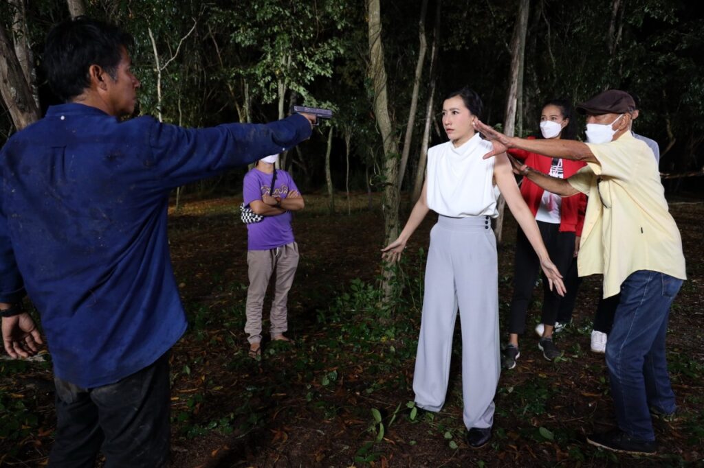 โลเกชั่นที่ใช้ถ่ายทำซีนนี้ก็คือ ป่านพวงค์ จ.ปทุมธานี ด้วยความที่เป็นซีนอารมณ์ล้วนๆ ก่อนถ่ายทำ ผู้จัดกบ ปภัสรา กับ อาต้อย จารึก ผู้กำกับ ก็โดดลงมาช่วยกันกำกับบอกอารมณ์ แอ็คติ้งให้กับ โหน,มิ้นท์ , ต่าย และเอ็กซ์ ในระหว่างซักซ้อมไปด้วย เมื่อต่างรู้คิวกันแล้วจึงเดินกล้องถ่ายทำ ซึ่งการแสดงดูลื่นไหลแม้จะเป็นซีนอารมณ์ร้องไห้เสียใจ น้ำตาเหมือนสั่งได้อีกแล้ว แต่ในระหว่าง ต่าย พูดไปตามบทบอกความจริงกับลูก เธอก็ขอเทคเองเพราะยุงบินว่อนตรงหน้าผากแถมยังรุมกัดอีก แล้วก็เล่นกัดแต่เธอคนเดียวซะด้วย จากนั้นก็มีการเปลี่ยนมุมกล้องเล็กน้อยจัดไฟใหม่ ถ่ายซีน หมู และพี่เอ๋ เข้ามาแล้วเอ็กซ์มอบตัว หลังจากซักซ้อมเล็กน้อย ก็ถ่ายจริงทันทีแล้วก็ผ่านไปได้ด้วยดี แต่ก็ทำเอา 3 นักแสดงมินท์ , ต่ายและเอ็กซ์ ตาบวมไปตามระเบียบเพราะร้องไห้หนักมากค่า
