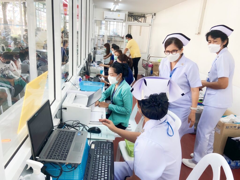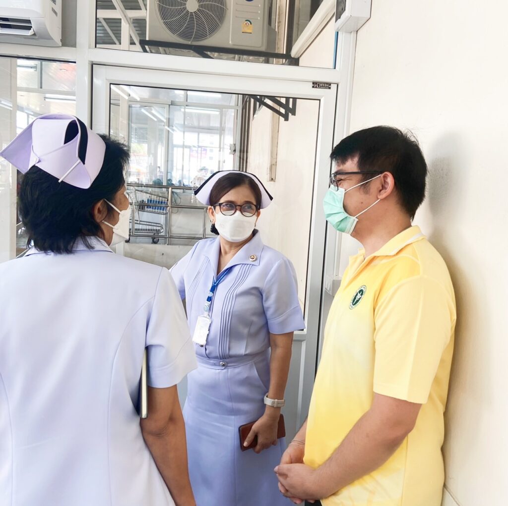 ทั้งนี้คุณรินนิภา สวนสุข ได้เป็นตัวแทนผู้บริหารโรงพยาบาลเข้าให้กำลังใจเจ้าหน้าที่ทุกฝ่ายที่เสียสละมาประจำคลินิก เจอ แจก จบ ดังกล่าวพร้อมขอบคุณทุกฝ่ายที่ให้การบริการประชาชนเป็นอย่างดีเสมอมา
