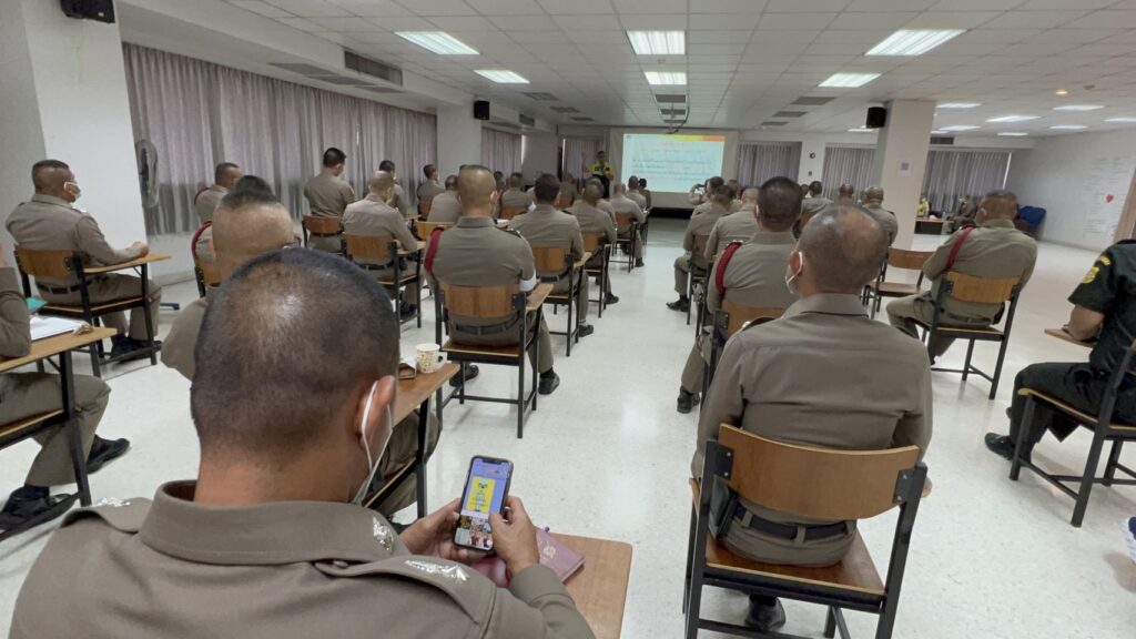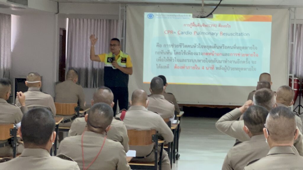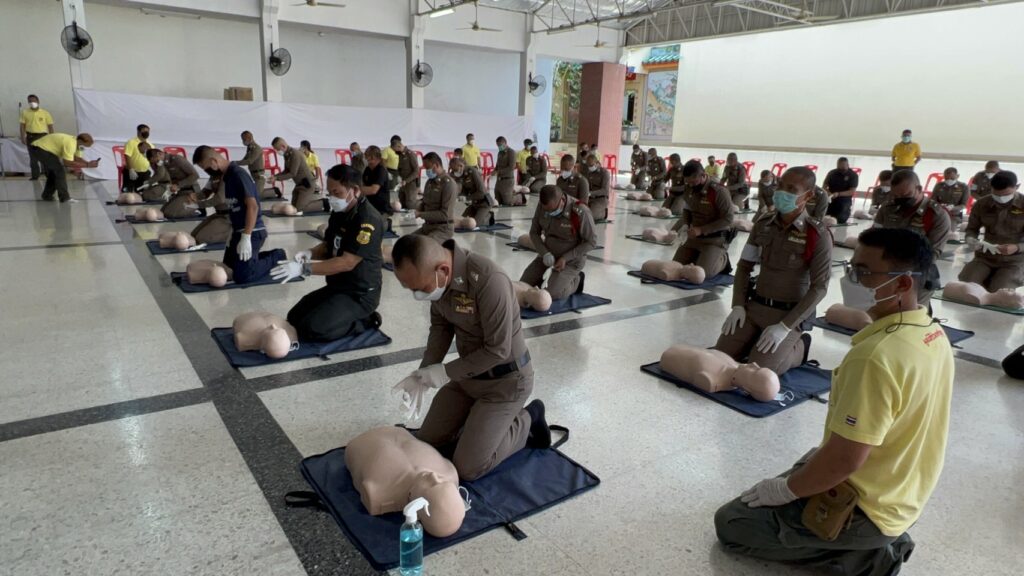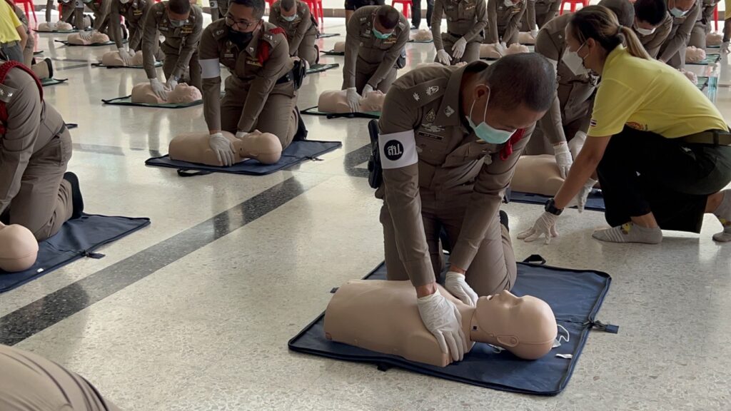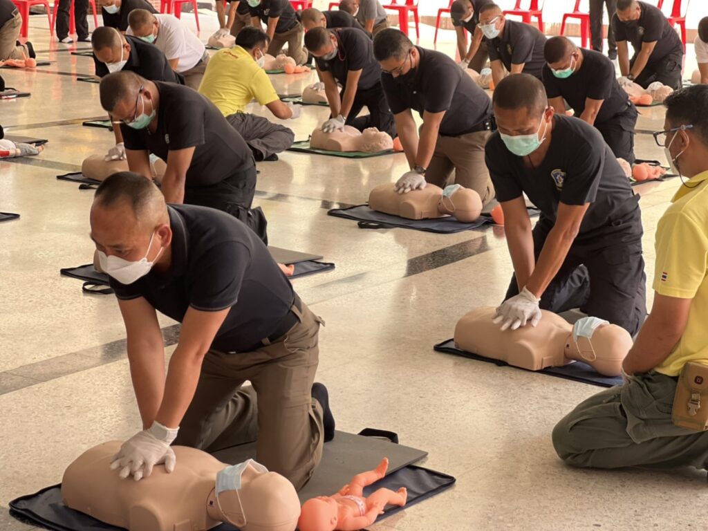 โดยมี ข้าราชการ ตำรวจ ในจังหวัดสมุทรปราการ เข้ารับการอบรม ด้วยความตั้งใจ เพื่อจะเอาความรู้ที่ได้อบรมไป ไว้ช่วยเหลือประชาชน หรือบุคคลที่อยู่ใกล้หากเกิดเหตุการฉุกเฉิน
