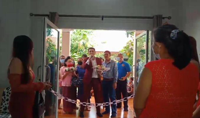 จากนั้นเจ้าบ่าวยังผ่านด่าน ให้ตะโกนรัก น้องแก้ว เจ้าสาว ทำให้เจ้าสาวได้ยินหน้าแดงเขินอายไปเลย ก่อนคลานเข้าไปพิธีผูกข้อไม้ข้อมือหรือแต่งงาน ด้วยบรรยากาศสนุกสนานเพื่อนเจ้าสาวได้ดึงแขนเจ้าบ่าวย่างกับเจ้าสาวอยากชื่นมื่น