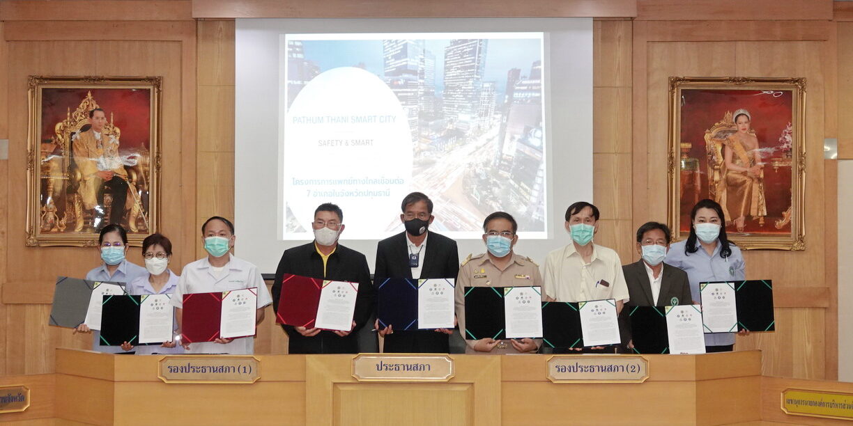 เมื่อเวลา 09.00 น. วันที่ 24 พฤษภาคม 2565 พล.ต.ท.คำรณวิทย์ ธูปกระจ่าง นายกองค์การบริหารส่วนจังหวัดปทุมธานี เป็นประธานในพิธีลงนามบันทึกข้อตกลงความร่วมมือเรื่องการจัดทำโครงการการแพทย์ทางไกลเชื่อมต่อ 7 อำเภอในจังหวัดปทุมธานี ปทุมธานีสมาร์ทซิตี้ SAFETY & SMART ปลอดภัย อัจฉริยะ สุขใจทุกชีวิต ร่วมกับผู้บริหารโรงพยาบาลในจังหวัดปทุมธานีทั้ง 7 แห่ง โดยมี นางรุจศลักษณ์ ธูปกระจ่าง ตั้งวงษ์เลิศ เลขานุการนายก อบจ.ปทุมธานี , นางสาวพัชร์อริญ หลีนวรัตน์ รองนายก อบจ.ปทุมธานี ร่วมเป็นสักขีพยาน