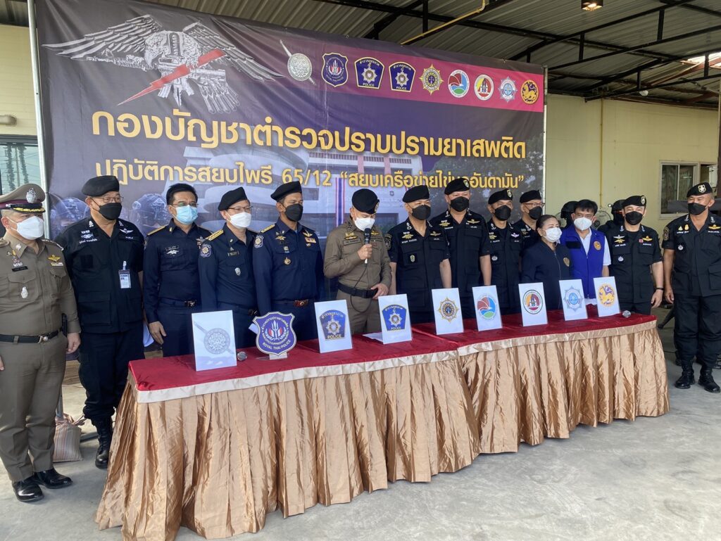 วันที่ 25 พ.ค. 2565 ที่ บริษัท คลีนแม็กซ์ จำกัด ลำลูกกาคลอง 6 ต.ลำลูกกา อ.ลำลูกกา จ.ปทุมธานี พล.ต.อ.รอย อิงคไพโรจน์ รอง ผบ.ตร./ผอ.ศอ.ปส.ตร. พร้อมด้วย พล.ต.ท.สรายุทธ สงวนโภคัยผบช.ปส., นายรัชพล ปาละกูล รักษาการในตำแหน่งผู้เชี่ยวชาญด้านการป้องกันและปราบปรามยาเสพติด ปปส.ภ.9,นายบัณฑิต ลีลาพตะ ผู้อำนวยการส่วนบังคับใช้กฎหมาย สำนักงาน ปปส.กทม., นายนายมานพ แสงโสทรผู้อำนวยการส่วนตรวจสอบทรัพย์สิน ปปส.กทม. ได้ร่วมแถลงข่าวผลปฏิบัติการปิดล้อมตรวจค้น ตามแผนยุทธการสยบไพรี 65/12 “สยบเครือข่ายไข่มุกอันดามัน”