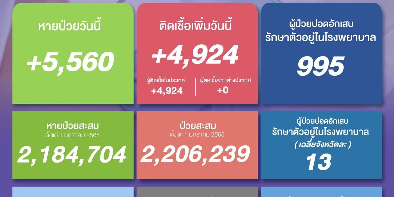 หายป่วยสะสม 2,184,704 ราย (ตั้งแต่ 1 มกราคม 2565)