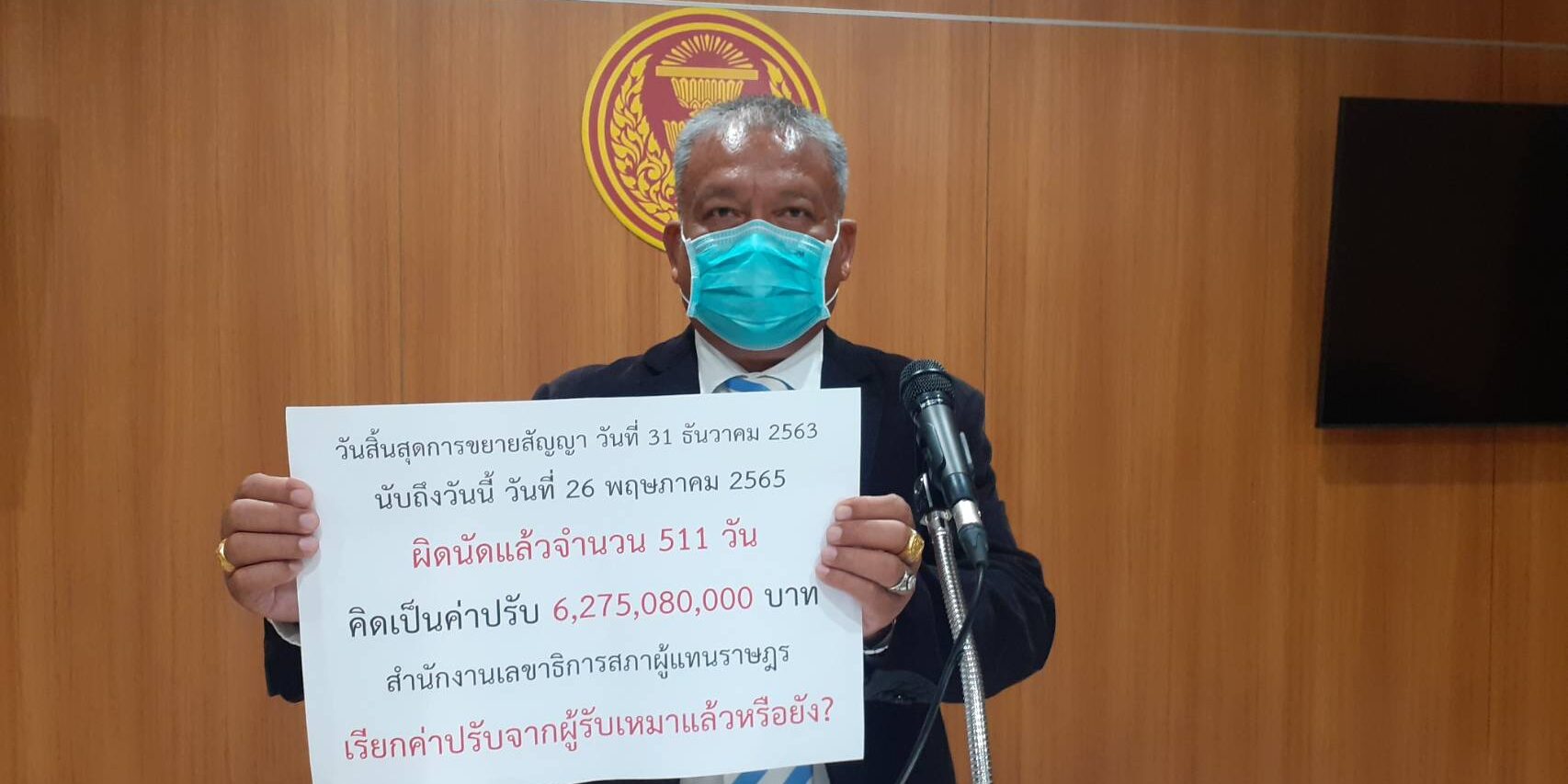 ล่วงเลยกำหนดเวลาตามสัญญา จำนวน 511 วันค่าปรับวันละ 12,280,000 บาท รวมเงินค่าปรับทั้งสิ้น 6,275,080,000 บาท