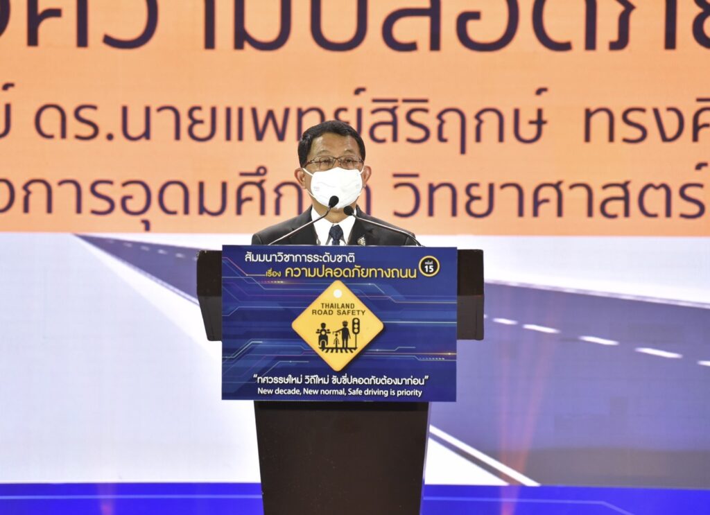 ศ.ดร.นพ.สิริฤกษ์ ปลัดกระทรวงการอุดมศึกษา วิทยาศาสตร์ วิจัยและนวัตกรรม ได้กล่าวปาฐกถาในหัวข้อ “นโยบายการวิจัย เพื่อสร้างความปลอดภัยทางถนน” โดยได้แสดงความรู้สึกยินดีที่กระทรวง (อว.) ร่วมกับกระทรวงสาธารณสุข และกระทรวงมหาดไทย จะได้มีส่วนสำคัญในการร่วมสนับสนุนและขับเคลื่อนการจัดการความปลอดภัยทางถนน ด้วยแนวคิดลดการบาดเจ็บและเสียชีวิตจากอุบัติเหตุทางถนน ด้วยการส่งเสริมการงานวิจัยและการพัฒนาแบบบูรณาการ เพื่อสร้างองค์ความรู้ และการผลักดันการวิจัยไปสู่การใช้ประโยชน์ ภายใต้โครงการความปลอดภัยทางถนน (Road Safety) ให้บรรลุเป้าหมายการยกระดับคุณภาพชีวิต เศรษฐกิจ สังคมและการท่องเที่ยวให้มีการพัฒนาอย่างยั่งยืน สามารถแก้ไขปัญหาที่ท้าทายและปรับตัวได้ทันต่อพลวัตการเปลี่ยนแปลงของโลก