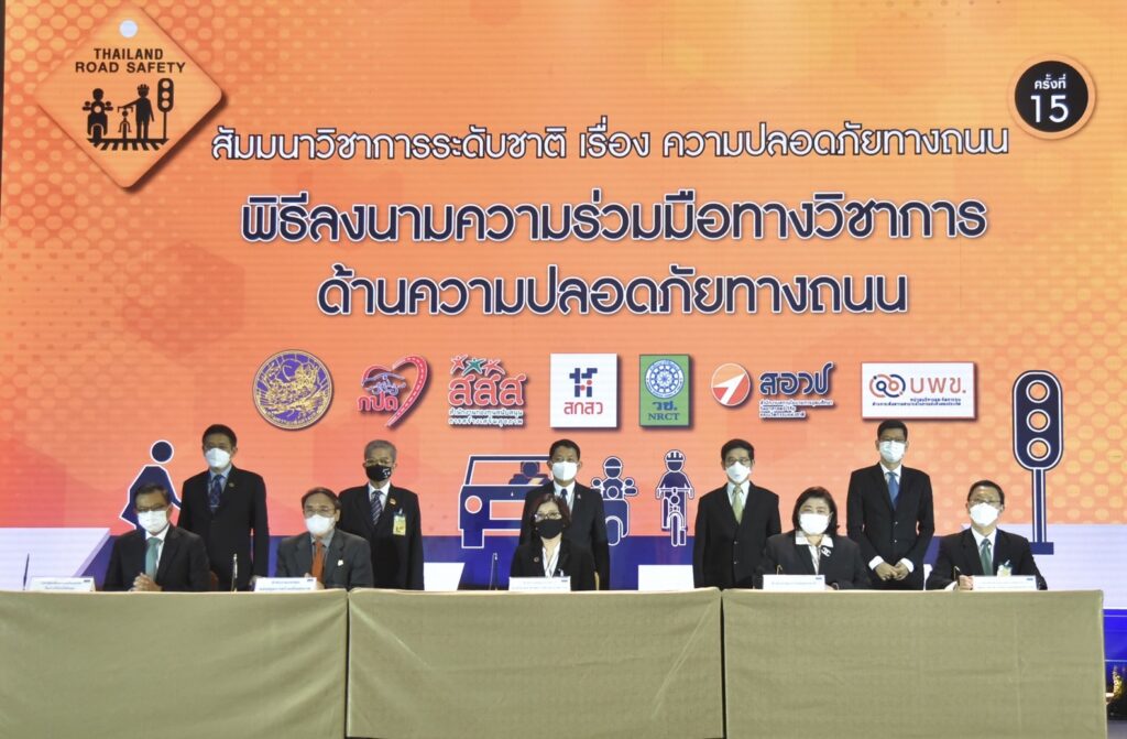 เมื่อวันพุธที่ 25 พฤษภาคม 2565 ณ ศูนย์ประชุมวายุภักษ์ โรงแรมเซ็นทรา บายเซ็นทารา ศูนย์ราชการ แจ้งวัฒนะ : พล.อ.ประยุทธ จันทร์โอชา นายกรัฐมนตรี เป็นประธานกล่าวเปิดงานสัมมนาวิชาการระดับชาติ เรื่องความปลอดภัยทางถนน ซึ่งภายในงานได้มีการจัดพิธีลงนามบันถึงข้อตกลงความปลอดภัยทางถนน (Road Safety) โดยมี ศ.ดร.นพ.สิริฤกษ์ ทรงศิวิไล ปลัดกระทรวงการอุดมศึกษา วิทยาศาสตร์ วิจัยและนวัตกรรม (อว.) และ ศ.ดร.นพ.สุทธิพร จิตต์มิตรภาพ ประธานกรรมการส่งเสริมวิทยาศาสตร์ วิจัยและนวัตกรรม ให้เกียรติร่วมเป็นสักขีพยานการลงนามบันทึกข้อตกลง ระหว่าง 5 หน่วยงาน ซึ่งประกอบด้วย สำนักงานการวิจัยแห่งชาติ (วช.) โดย ดร.วิภารัตน์ ดีอ่อง ผู้อำนวยการสำนักงานการวิจัยแห่งชาติ,สำนักงานคณะกรรมการส่งเสริมวิทยาศาสตร์ วิจัยและนวัตกรรม (สกสว.) โดย รศ.ดร.ปัทมาวดี โพชนุกูล ผู้อำนวยการสำนักงานคณะกรรมการส่งเสริมวิทยาศาสตร์ วิจัยและนวัตกรรม,หน่วยบริหารและจัดการทุนด้านการเพิ่มความสามารถในการแข่งขันของประเทศ (บพข.) โดย รศ.ดร.ธงชัย สุวรรณสิชณน์ รองผู้อำนวยการบริหารและจัดการทุนด้านการเพิ่มความสามารถในการแข่งขันของประเทศ,กองทุนเพื่อความปลอดภัยในการใช้รถใช้ถนน (กปถ.) โดย นายสรพงศ์ ไพฑูรย์พงษ์ ประธานกองทุนเพื่อความปลอดภัยในการใช้รถใช้ถนน และสำนักงานกองทุนสนับสนุนการสร้างเสริมสุขภาพ (สสส.) โดย ดร.สุปรีดา อุลยานนท์ ผู้จัดการกองทุนสนับสนุนการสร้างเสริมสุขภาพ โดยทั้ง 5 หน่วยงานนี้ตกลงร่วมกันเพื่อบูรณาการด้านงานวิจัยและการพัฒนาสร้างองค์ความรู้และผลักดันงานวิจัยสู่การนำไปใช้ประโยชน์อย่างเป็นรูปธรรม เพื่อให้บรรลุเป้าหมายในการเดินทางและ