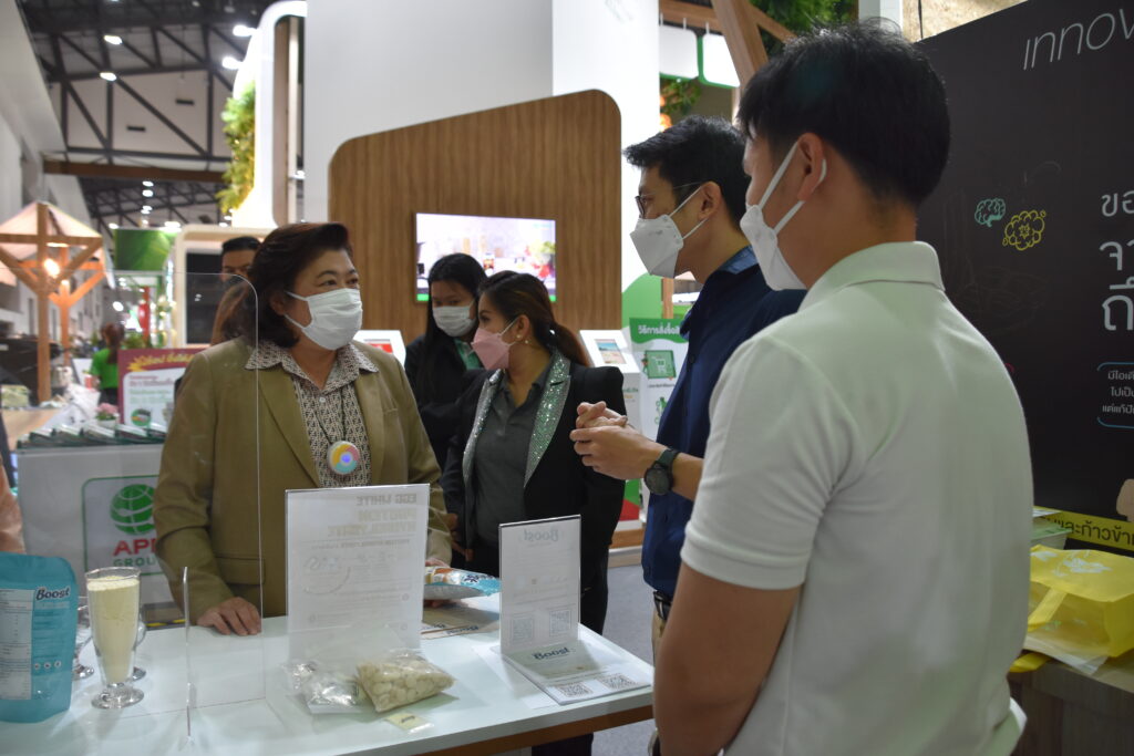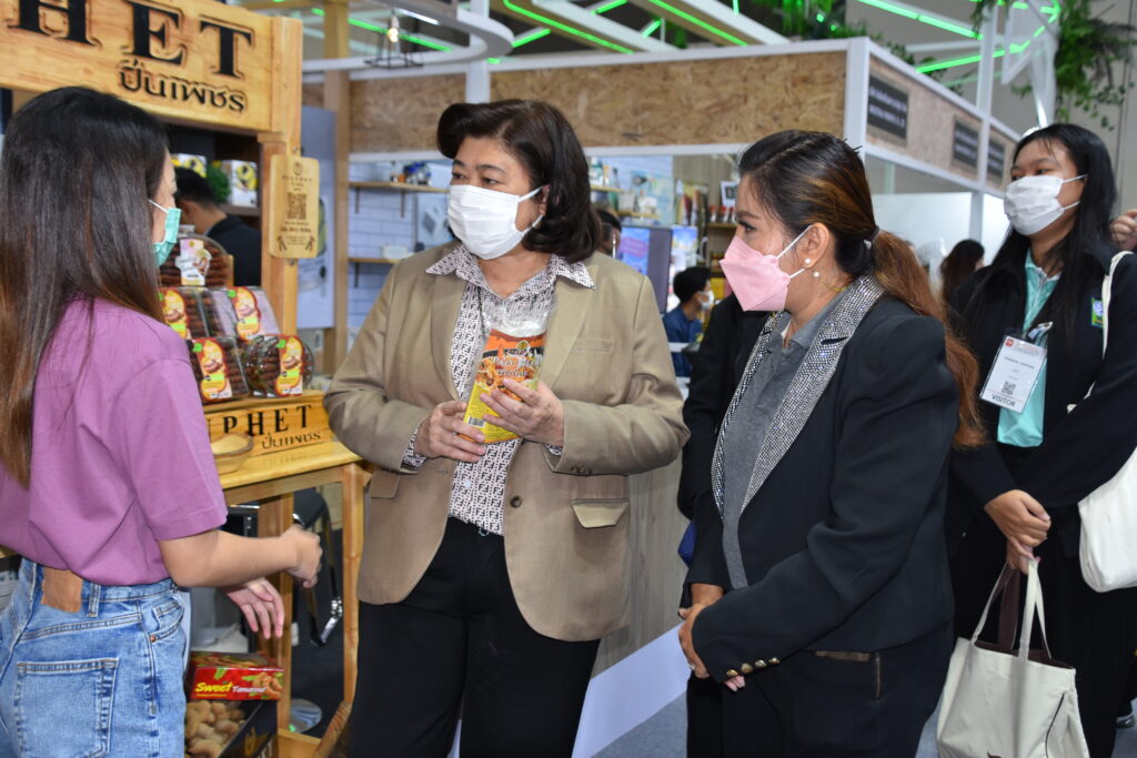 วันที่ 26 พฤษภาคม 2565 : ดร.วิภารัตน์ ดีอ่อง ผู้อำนวยการสำนักงานการวิจัยแห่งชาติ (วช.) เยี่ยมชมและให้กำลังใจ ผู้ประกอบการ SME ที่บูท Innovative House (วช.) ในงาน THAIFEX Anuga Asia 2022 -The Hybrid Edition โดยมี นางสุภาพร โชคเฉลิมวงศ์ ผู้อำนวยการกองบริหารทุนวิจัยและนวัตกรรม 1