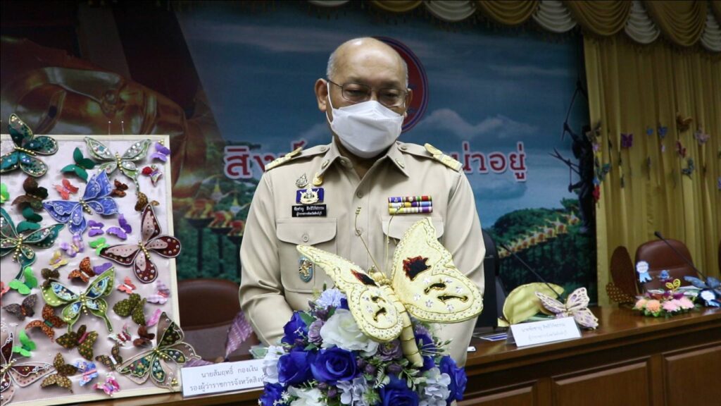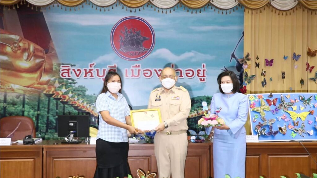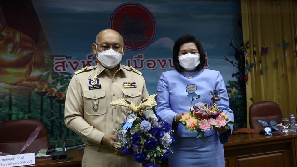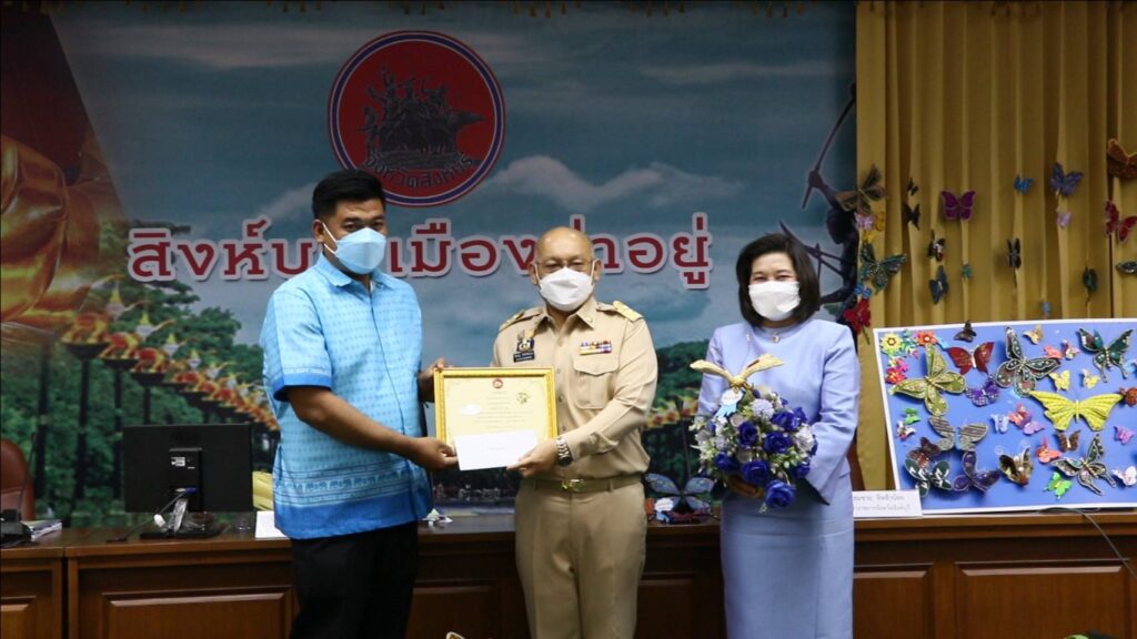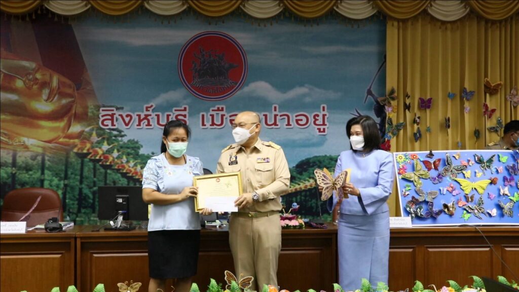 วันพฤหัสบดีที่ ๒๖ พฤษภาคม พ.ศ.๒๕๖๕ เวลา๐๙.๓๐ น.นายชัยชาญ สิทธิวิรัชธรรม ผู้ว่าราชการจังหวัดสิงห์บุรี เป็นประธานในการมอบรางวัลให้กับผู้เข้าประกวดประดิษฐ์ผีเสื้อจากผ้าไหม ผ้าฝ้าย หรือผ้าตามอัตลักษณ์ของจังหวัดสิงห์บุรี พ.ศ. ๒๕๖๕ ด้วยรัฐบาลได้กำหนดจัดงานเฉลิมพระเกียรติสมเด็จพระนางเจ้าสิริกิติ์ พระบรมราชินีนาถพระบรมราชชนนีพันปีหลวง เนื่องในโอกาสมหามงคลเฉลิมพระชนมพรรษา ๙๐ พรรษา ๑๒ สิงหาคม ๒๕๖๕ และได้กำหนดให้มีการจัดนิทรรศการเฉลิมพระเกียรติฯ ระหว่างวันที่ ๑ – ๑๕ สิงหาคม ๒๕๖๕ ณ บริเวณถนนราชดำเนินกลาง และเชิญชวนทุกจังหวัดร่วมประดิษฐ์ผีเสื้อที่ทำจากผ้าไหม ผ้าฝ้าย หรือผ้าตามอัตลักษณ์ของจังหวัด ไปประดับในการจัดนิทรรศการ ฯ ดังกล่าว