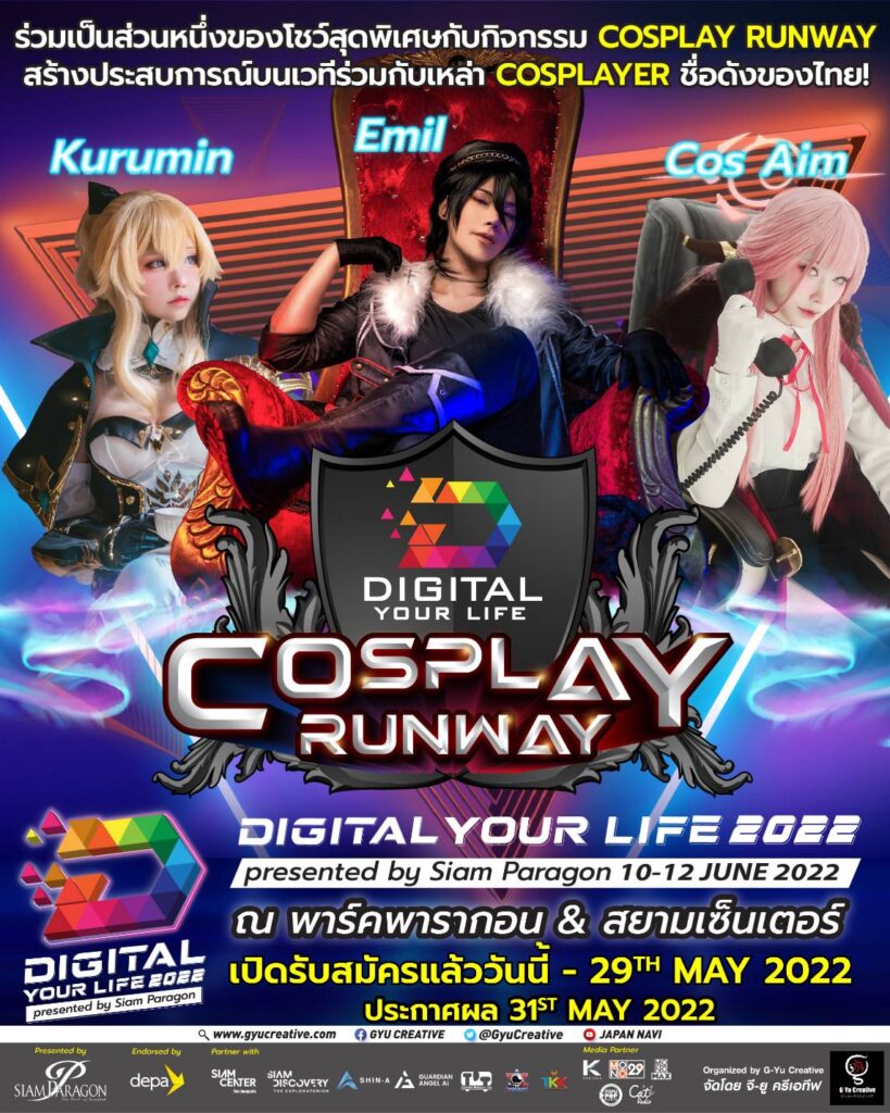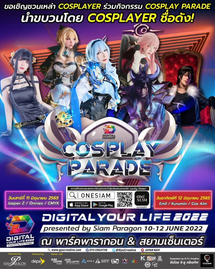 • Cosplay Parade & Runway ร่วมเป็นส่วนหนึ่งของโชว์สุดพิเศษกับกิจกรรม Cosplay Parade กับเหล่า Cosplayer ชื่อดังของไทย อาทิ Jasper Z, Onnies และ CMYK ในวันเสาร์ที่ 11 มิ.ย. 2565 พร้อมสร้างประสบการณ์บนเวทีกับ Cosplay Runway อาทิ Emil Cosplayer, Kuruminさん, Cos Aim ในวันอาทิตย์ที่ 12 มิ.ย. 2565 โดยผู้สนใจสามารถลงทะเบียนล่วงหน้าผ่านแอปพลิเคชั่น ONESIAM SuperApp