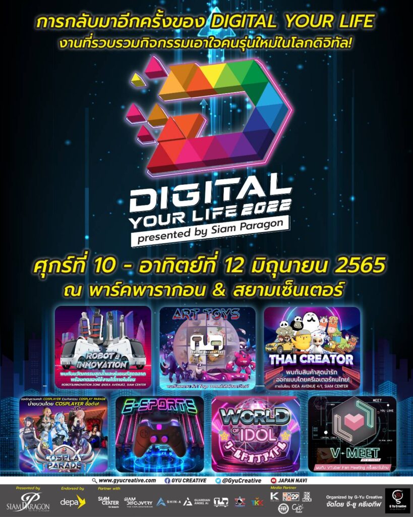 สยามพารากอน World-Class Shopping Destination ตอกย้ำความเป็นผู้นำในการสร้างสรรค์ประสบการณ์ที่แปลกใหม่ให้กับผู้บริโภคอย่างเหนือระดับ จับมือกับ จี-ยู ครีเอทีฟ สร้างปรากฎการณ์เชื่อมโลกสู่ดิจิทัลไลฟ์สไตล์ ในงาน “Digital Your Life presented by Siam Paragon” ชวนคนรุ่นใหม่สนุกกับกิจกรรมโลกเสมือนจริง เรียนรู้นวัตกรรมและเทคโนโลยีใหม่ ตื่นตาตื่นใจไปกับ VTubers คนดัง