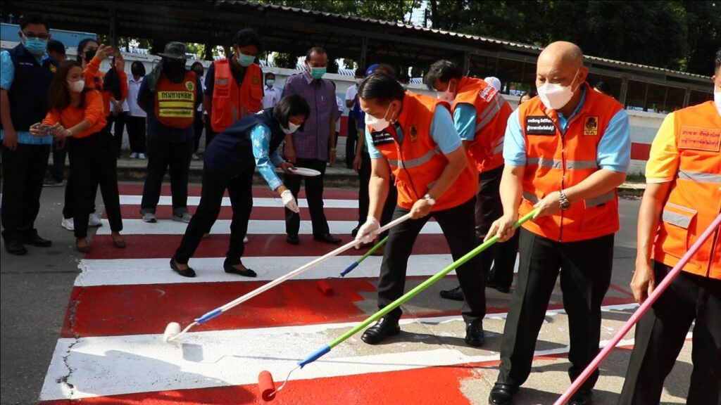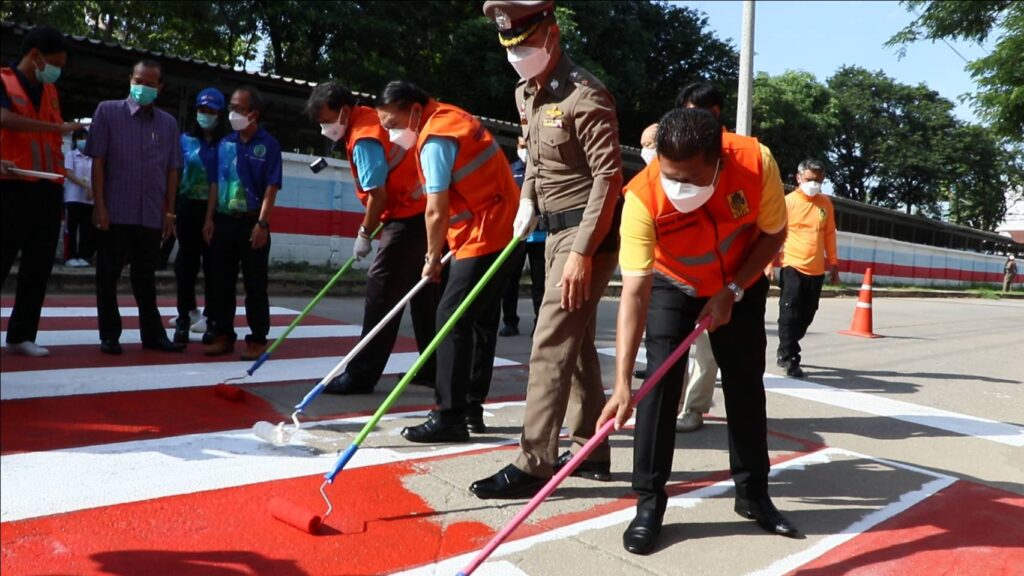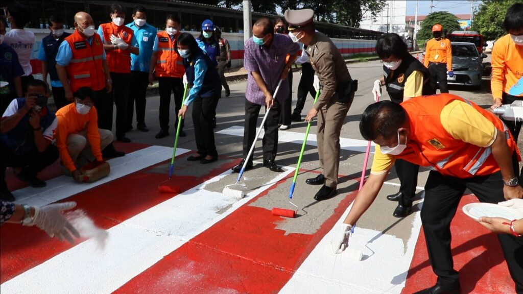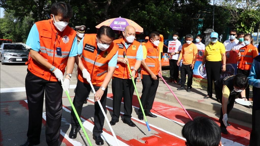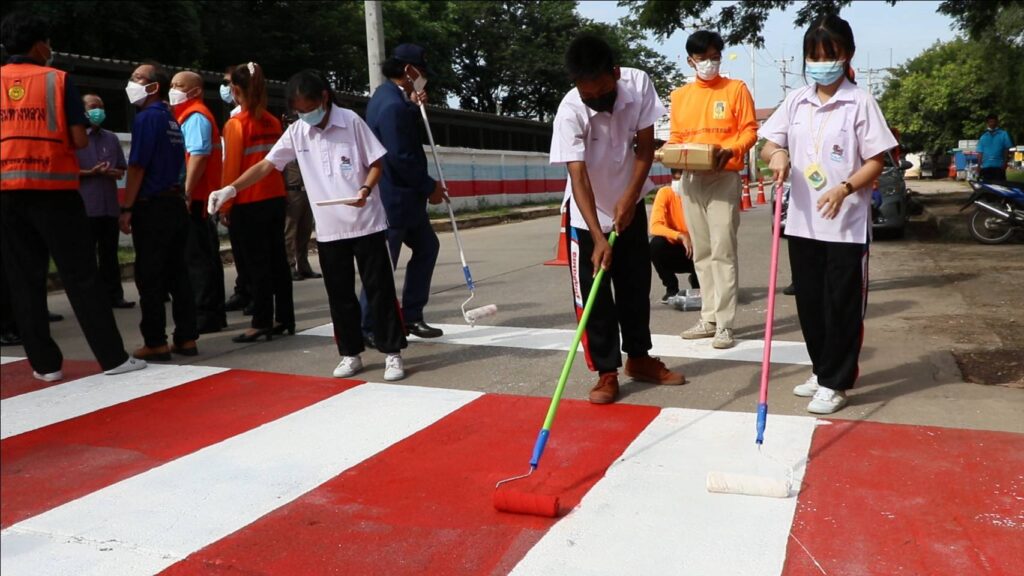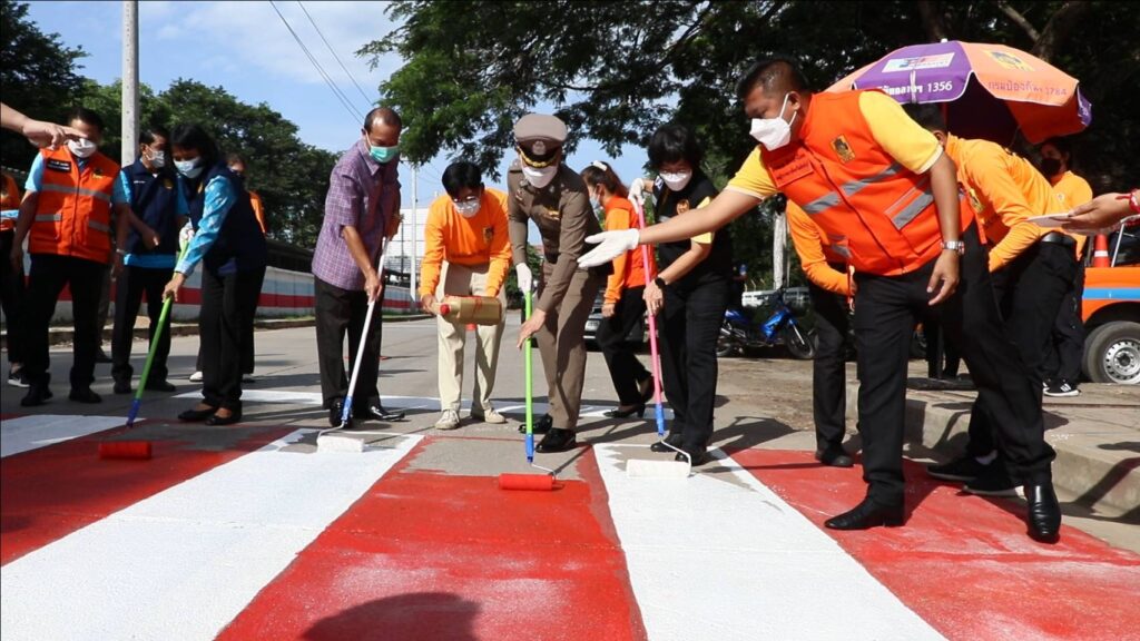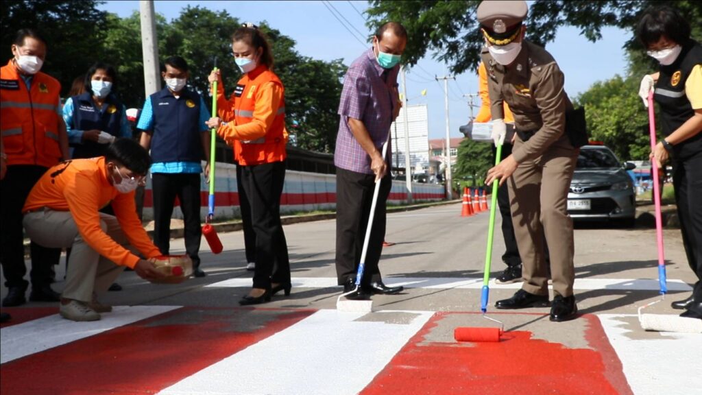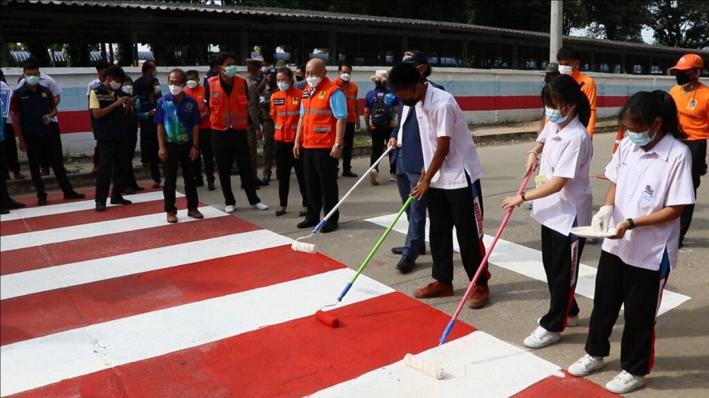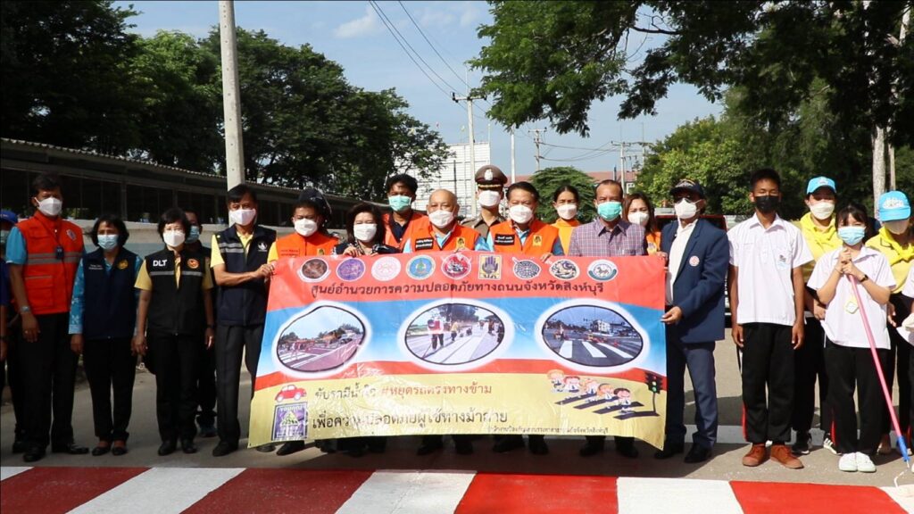 วันศุกร์ที่ 27 พฤษภาคม 2565 เวลา 08.30 น. ศูนย์อำนวยการความปลอดภัยทางถนนจังหวัดสิงห์บุรี จัดกิจกรรม “การรณรงค์เพื่อลดอุบัติเหตุบริเวณทางข้าม” นำโดยนายชัยชาญ สิทธิวิรัชธรรม ผู้ว่าราชการจังหวัดสิงห์บุรี ประธานศูนย์อำนวยการความปลอดภัยทางถนนจังหวัดสิงห์บุรี พร้อมด้วย นายสัมฤทธิ์ กองเงินและนายสมชาย ลีหล้าน้อย รองผู้ว่าราชการจังหวัดสิงห์บุรี ตำรวจภูธรจังหวัดสิงห์บุรี หัวหน้าส่วนราชการ นายอำเภอ องค์กรปกครองส่วนท้องถิ่น ภาครัฐ ภาคเอกชนและภาคประชาชน จิตอาสา คณะครู/นักเรียนโรงเรียนสิงห์บุรี ร่วมกิจกรรม “การรณรงค์เพื่อลดอุบัติเหตุบริเวณทางข้าม” เพื่อสร้างความปลอดภัยบนท้องถนนและสร้างความตระหนักแก่ประชาชนผู้ใช้รถใช้ถนนให้ใช้ความระมัดระวังมากขึ้น โดยมีกิจกรรมทาสี ตีเส้นทำเครื่องหมายจราจรบนผิวทางม้าลาย ณ บริเวณถนนด้านข้างโรงเรียนสิงห์บุรี ต.บางมัญ อ.เมืองสิงห์บุรี จ.สิงห์บุรี เพื่อป้องกันลดอุบัติเหตุช่วงรับ-ส่ง นักเรียน