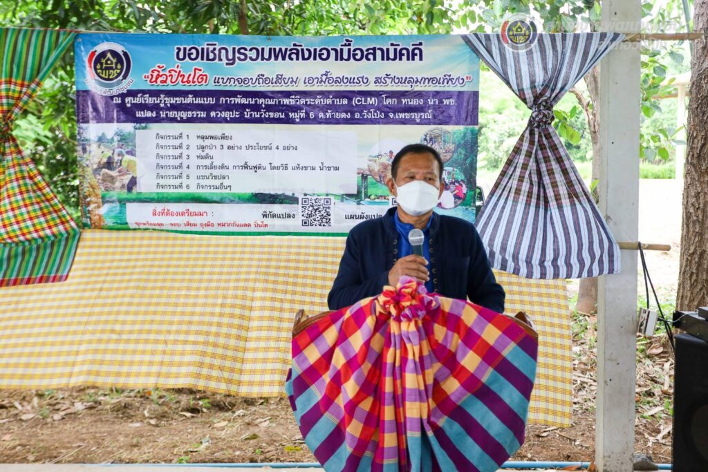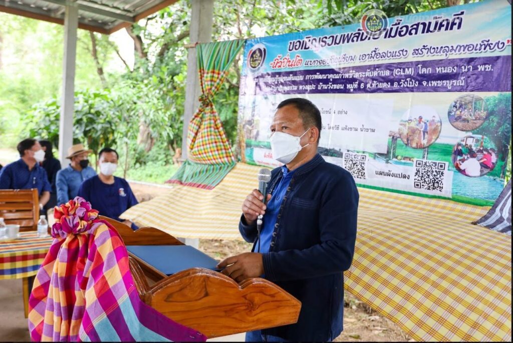 ที่ตำบลท้ายดง อำเภอวังโป่ง จังหวัดเพชรบูรณ์ นายสมคิด จันทมฤก อธิบดีกรมการพัฒนาชุมชน มอบหมายให้นายนิวัติ น้อยผาง รองอธิบดีกรมการพัฒนาชุมชน ลงพื้นที่จังหวัดเพชรบูรณ์ ติดตามการขับเคลื่อน “โคก หนอง นา พช.” และการขับเคลื่อนการขจัดความยากจนและพัฒนาคนทุกช่วงวัยอย่างยั่งยืน ตามหลักปรัชญาของเศรษฐกิจพอเพียง