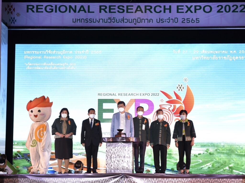 วันที่ 27 พฤษภาคม 2565 : กระทรวงการอุดมศึกษา วิทยาศาสตร์ วิจัยและนวัตกรรม (อว.) โดย สำนักงานการวิจัยแห่งชาติ (วช.) ร่วมกับมหาวิทยาลัยราชภัฏอุดรธานี จัดงาน “มหกรรมงานวิจัยส่วนภูมิภาค ประจำปี 2565 (Regional Research Expo 2022)”จัดขึ้นระหว่างวันที่ 27-29 พฤษภาคม 2565 ณ มหาวิทยาลัยราชภัฏอุดรธานี โดยมี ศาสตราจารย์พิเศษ ดร.เอนก เหล่าธรรมทัศน์ รัฐมนตรีว่าการกระทรวงการอุดมศึกษา วิทยาศาสตร์ วิจัยและนวัตกรรม (อว.) กล่าวเปิดงานและปาฐกถาพิเศษ เรื่อง “อว. กับการขับเคลื่อนนโยบายเศรษฐกิจ BCG เป็นฐานในการพัฒนาชาติ”