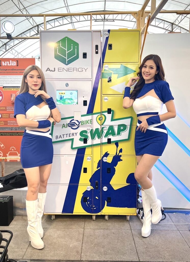 ในปีนี้ เอเจ พระเอกตัวจริง หรือที่ทุกคนรู้จักดีในชื่อ AJ EV BIKE ขอนำเสนอ นวัตกรรมแห่งวงการมอเตอร์ไซค์ไฟฟ้า ซึ่งก็คือ AJ ENERGY Swap Station ที่ได้นำมาจัดแสดงในงานนี้ นอกเหนือจากการนำรถมอเตอร์ไซค์ไฟฟ้ารุ่นใหม่ๆ ที่ใช้แบตเตอรี่ลิเธี่ยม สามารถสลับเปลี่ยนขุมพลังในไม่กี่วินาทีแล้ว เรายังคงมีระบบ ECO SYSTEM มานำเสนอ โดยมีความสะดวกสบาย ทั้งระบบการทำงานต่างๆเป็นไปอย่างสะดวกรวดเร็ว ถือได้ว่าเราได้พัฒนาทั้ง Application โดยคนไทยและเพื่อคนไทย ช่วยกันใช้พลังงานบริสุทธิ์ร่วมรักษาสิ่งแวดล้อม และเรามุ่งมันที่จะพัฒนาต่อไป