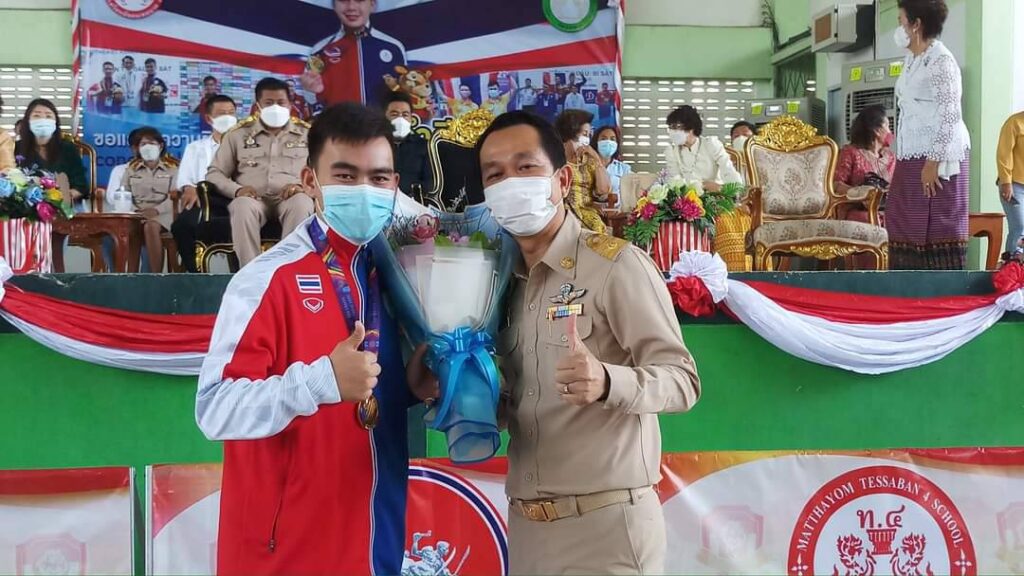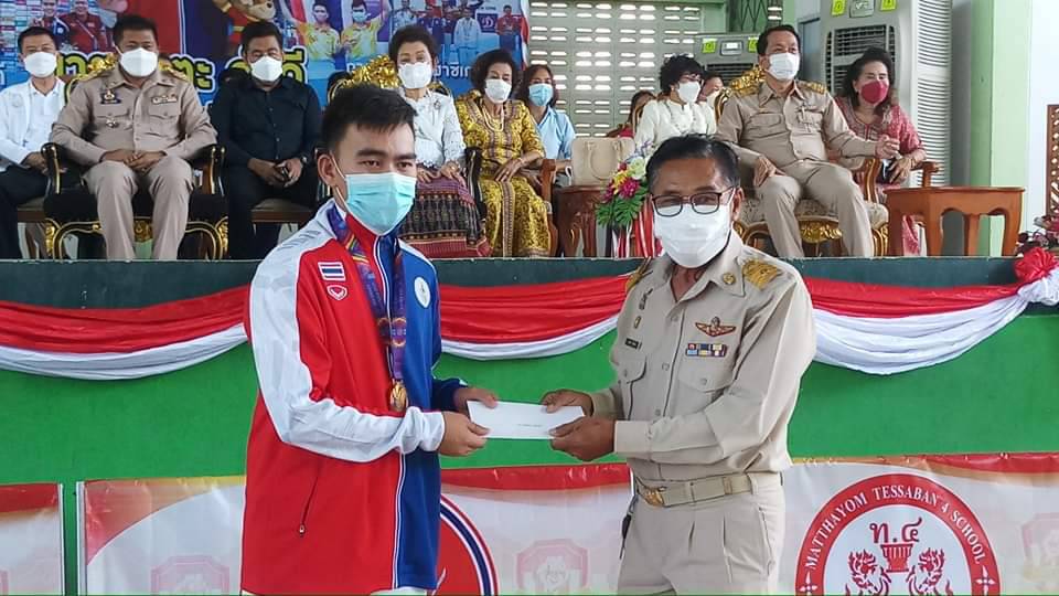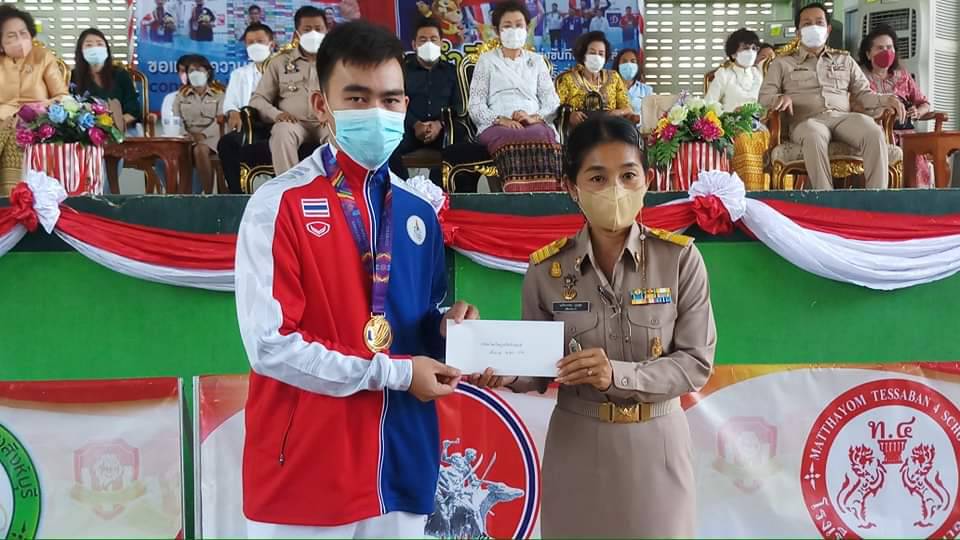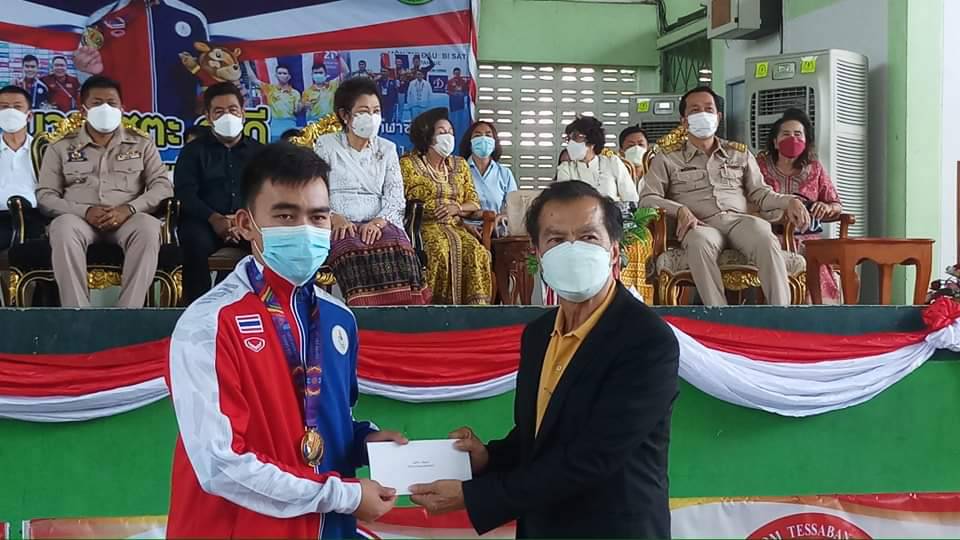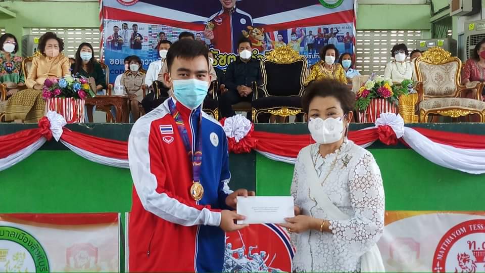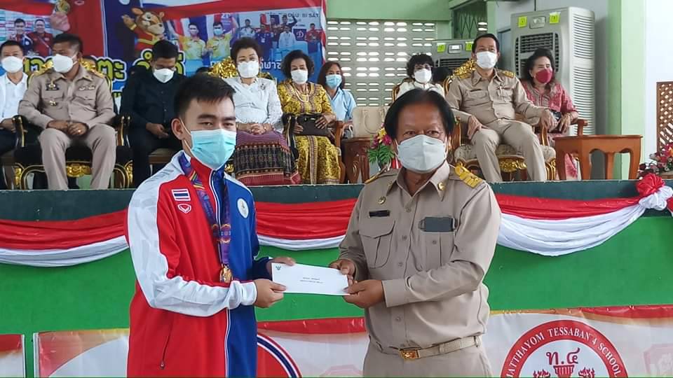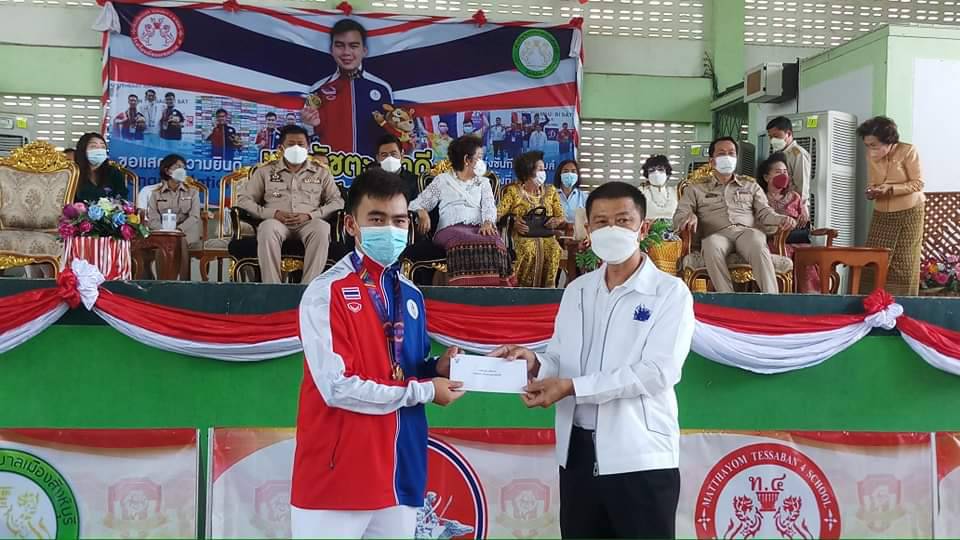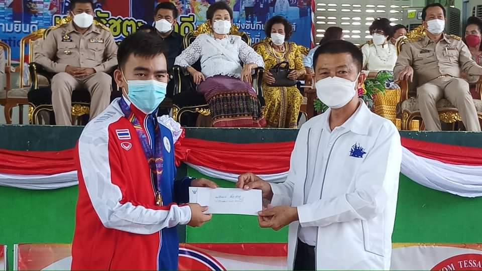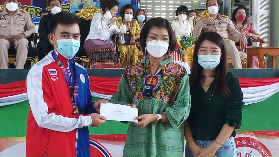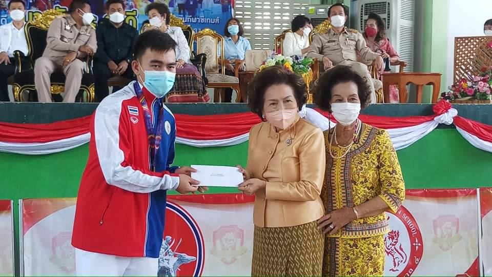 ทั้งนี้คุณแม่ภรณี ธนาคมานุสรณ์ คุณแม่รัฐมนตรีชัยวุฒิ ธนาคมานุสรณ์ นายยกเทศมนตรีเมืองสิงห์บุรี นายศุภวัฒน์ เทียนถาวร นายกองค์การบริหารส่วนจังหวัดสิงห์บุรี และอีกหลายท่าน ร่วมมอบเงินสนับสนุนนักกีฬาและครูฝึกสอน