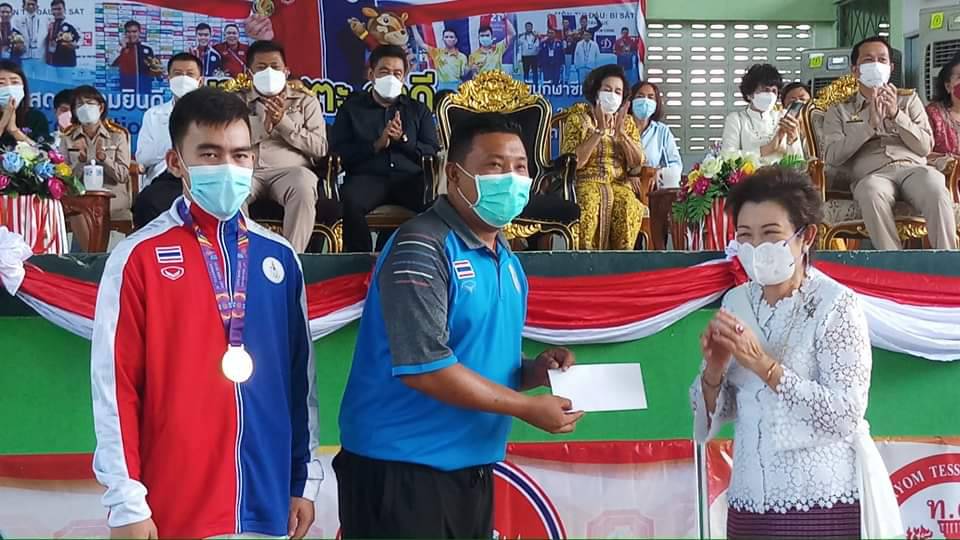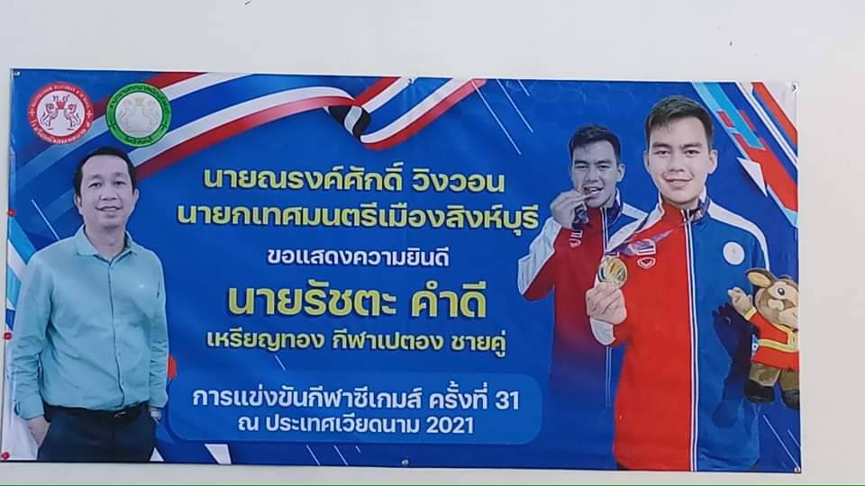 วันที่ 30 พ.ค. 65 เทศบาลเมืองสิงห์บุรี จัดพิธีต้อนรับนักกีฬาเหรียญทองซีเกมส์ โดยมีนายสมชาย ลีหล้าน้อย รองผู้ว่าราชการจังหวัดสิงห์บุรี เป็นประธานในพิธี มอบช่อดดอกไม่ โล่ห์เกียรติยศ และเงินสนับสนุนพร้อมแสดงความยินดี ให้กับ นายรัชตะ คำดี นักกีฬาเหรียญทองซีเกมส์ ครั้งที่ 30 ( ประเภทเปตองชายคู่ ) จากประเทศเวียดนาม