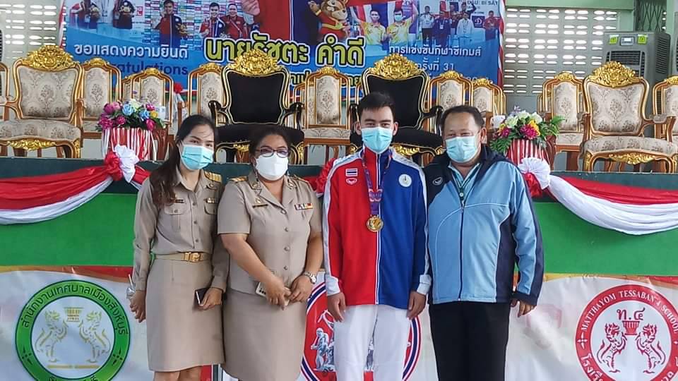 ในพิธีมี นายณรงค์ศักดิ์ วิงวอน นายกเทศมนตรีเมืองสิงห์บุรี คณะผู้บริหาร สมาชิกสภาฯ หัวหน้าส่วนราชการ คณะครู และ นักเรียน มาร่วมมอบดอกไม้แสดงความยินดี และมอบทุนการศึกษา ให้กับนายรัชตะคำดี