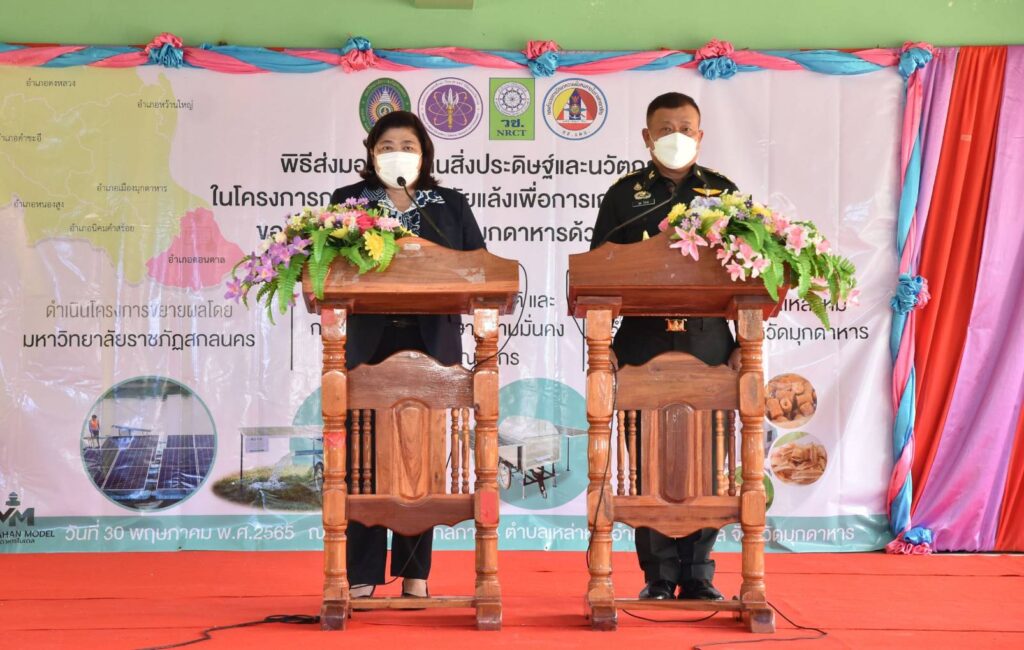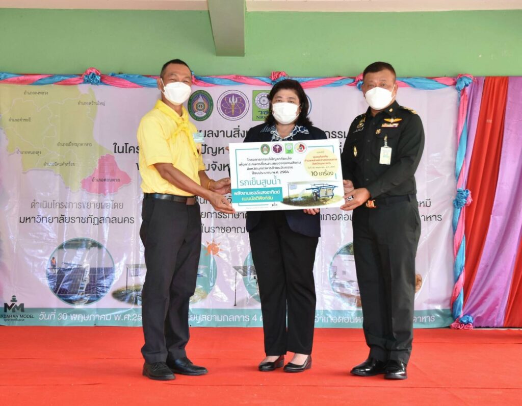 และ มหาวิทยาลัยราชภัฏสกลนคร จัดพิธีส่งมอบนวัตกรรมเพื่อแก้ปัญหาภัยแล้งและยกระดับการแปรรูปผลผลิตทางการเกษตร