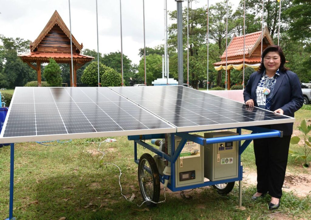 8.) กลุ่มวิสาหกิจชุมชนปลอดภัยไทนาซิง และมีการสาธิตนวัตกรรม ประกอบด้วย รถเข็นสูบน้ำพลังงานเซลล์แสงอาทิตย์แบบมัลติฟังก์ชัน เครื่องอบลมร้อนแบบพาราโบลาโดมพลังงานเซลล์แสงอาทิตย์เคลื่อนที่ได้