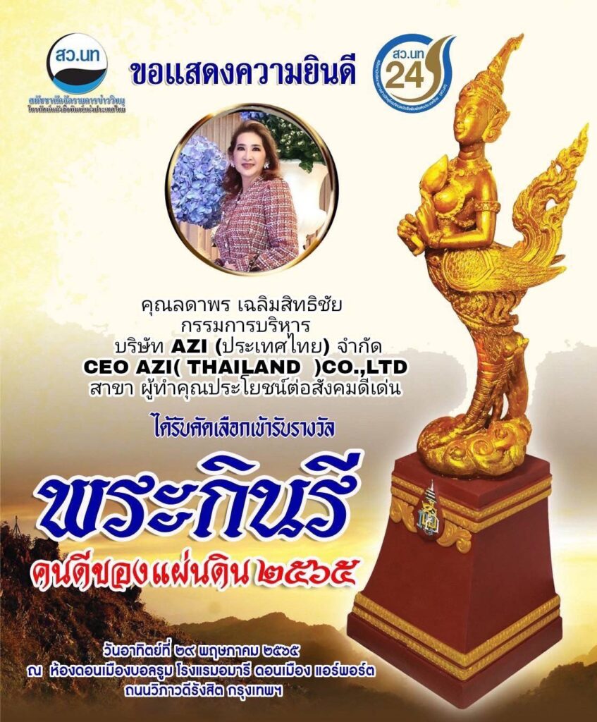 CEO AZI (THAILAND) CO.,LTD สาขา ผู้ทำคุณประโยชน์ต่อสังคมดีเด่น ได้รับคัดเลือกเข้ารับรางวัล