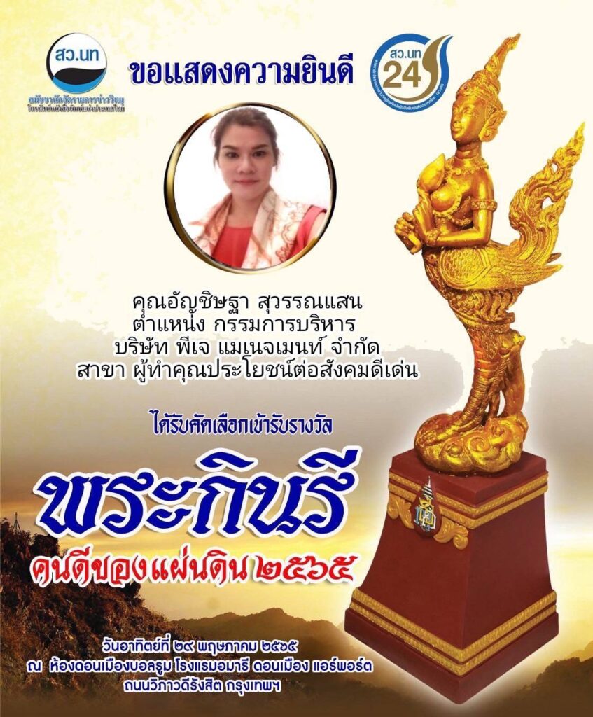 บริษัท พีเจ แมเนจเมนท์ จำกัด สาขา ผู้ทำคุณประโยชน์ต่อสังคมดีเด่น