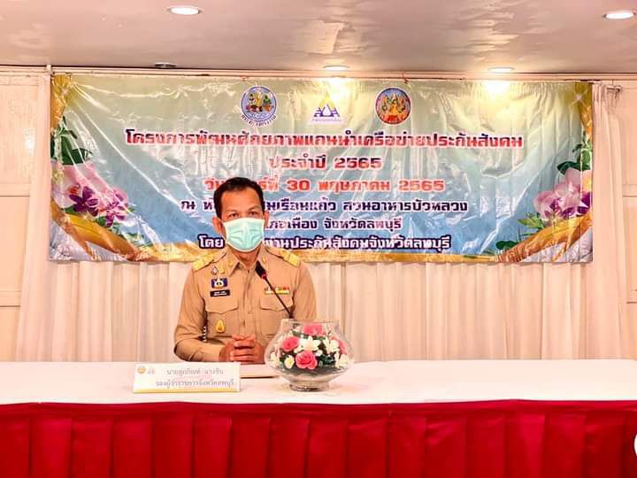 วันที่ 30 พฤษภาคม 2565 ที่ห้องประชุมเรือนแก้ว สวนอาหารบัวหลวง อำเภอเมืองลพบุรี จังหวัดลพบุรี นายสุภกิณห์ แวงชิน รองผู้ว่าราชการจังหวัดลพบุรี เป็นประธานเปิดสัมมนาพัฒนาศักยภาพแกนนำเครือข่ายประกันสังคม ประจำปี พ.ศ.2565 ทั้งนี้เพื่อยกระดับบทบาทหน้าที่แกนนำเครือข่ายประกันสังคม ในฐานะตัวแทนขับเคลื่อนการขยายความคุ้มครองประกันสังคม สู่แรงงานอิสระในระดับพื้นที่ รวมไปถึงเพิ่มศักยภาพ เสริมสร้างความรู้ ความเข้าใจเกี่ยวกับการประกันสังคมมาตรา 40 สิทธิประโยชน์ที่พึงได้รับตามกฎหมาย รวมทั้งเทคโนโลยีที่จำเป็นในการปฏิบัติงานประกันสังคมมาตรา 40 ให้กับแกนนำเครือข่ายประกันสังคม ซึ่งสามารถนำไปขยายความคุ้มครองประกันสังคมสู่แรงงานนอกระบบ และเพื่อแลกเปลี่ยนประสบการณ์ของแกนนำเครือข่ายประกันสังคม ในการขับเคลื่อนการขยายความคุ้มครองประกันสังคม สู่แรงงานนอกระบบในระดับพื้นที่โดยตรง ซึ่งผู้เข้าร่วมโครงการครั้งนี้ ประกอบด้วยแกนนำเครือข่ายประกันสังคม เครือข่าย “บวร” (กลุ่มสมาชิกบ้าน วัด และโรงเรียน) และเจ้าหน้าที่ที่เกี่ยวข้อง จำนวน 100 คน