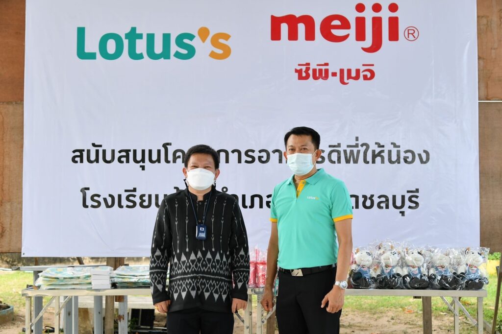 เนื่องในวันดื่มนมโลก โลตัส และ ซีพี – เมจิ ชวนคนไทยหันมาดื่มนมมากยิ่งขึ้น และมีส่วนร่วมในการมอบอาหารที่ดี มีประโยชน์ ให้กับน้องๆนักเรียนที่ขาดแคลนทั่วประเทศร่วมกับโครงการ “อาหารดีพี่ให้น้อง” เมื่อซื้อนมพาสเจอร์ไรซ์เมจิ ครบทุก 99 บาท* ระหว่างวันที่ 26 พ.ค.–8 มิ.ย.65 ซีพี-เมจิ จะร่วมสมทบทุน 1 บาท ให้โครงการ “อาหารดีพี่ให้น้อง” ร่วมกับโลตัส จัดสรรวัตถุดิบให้โรงเรียนที่ขาดแคลนใน 77 จังหวัดทั่วประเทศ เพื่อให้น้องๆ เข้าถึงอาหารกลางวันที่ดีและมีประโยชน์ ตลอดทั้งปีการศึกษา