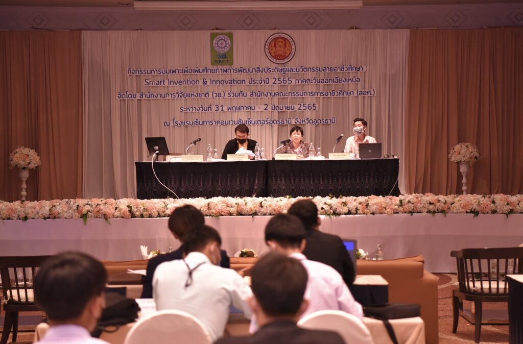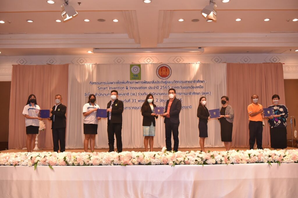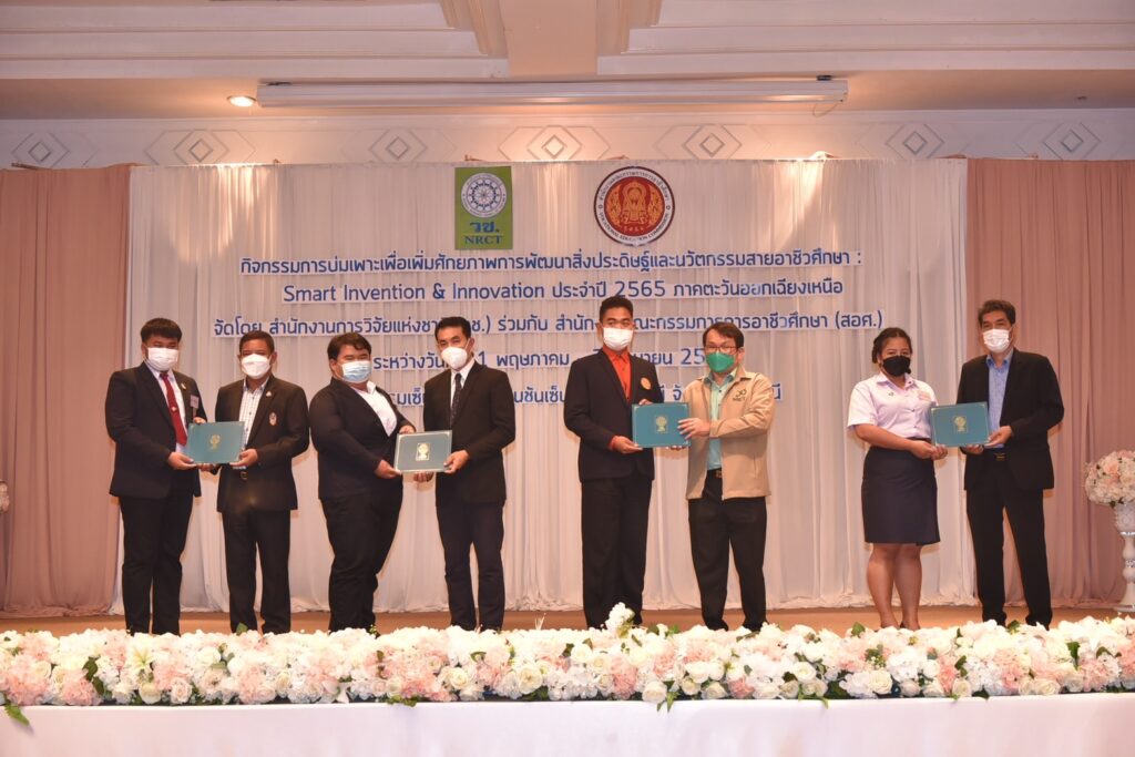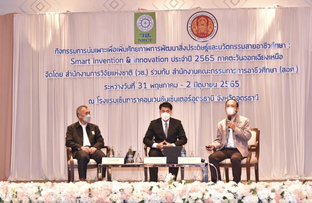 วช. ร่วมกับ สอศ. จัดกิจกรรม “การบ่มเพาะเพิ่มศักยภาพการพัฒนาสิ่งประดิษฐ์และนวัตกรรมสายอาชีวศึกษา : Smart Invention & Innovation ภาคตะวันออกเฉียงเหนือ” ระหว่างวันที่ 31 พฤษภาคม – 2 มิถุนายน 2565 ณ โรงแรมเซ็นทาราคอนเวนชันเซ็นเตอร์อุดรธานี จังหวัดอุดรธานี เพื่อส่งเสริมและสนับสนุนการพัฒนาศักยภาพของนักเรียน นักศึกษาสายอาชีวศึกษา เพื่อเตรียมความพร้อมให้มีการนำเทคโนโลยีมาใช้ในการพัฒนาประเทศในด้านต่างๆ