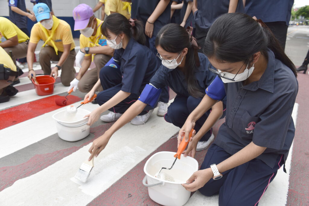 วันที่ 3 มิ.ย.65 เวลา 10.30 น. : พล.ต.อ.สุวัฒน์ แจ้งยอดสุข ผบ.ตร. พร้อมด้วย พล.ต.อ.ดำรงศักดิ์ กิตติประภัสร์ รอง ผบ.ตร.,พล.ต.ท.สำราญ นวลมา ผบช.น.,พล.ต.ต.สยาม บุญสม รอง ผบช.น. และเจ้าหน้าที่ที่เกี่ยวข้อง ร่วมกิจกรรมจิตอาสาพระราชทาน “เราทำความดี ด้วยหัวใจ” โดยการทาสี ตีเส้นจราจรและทางข้าม (ทางม้าลาย) เพื่อป้องกันและลดอุบัติเหตุทางถนน ณ โรงเรียนบดินทรเดชา (สิงห์ สิงหเสนี) เนื่องในวันเฉลิมพระชนมพรรษาสมเด็จพระนางเจ้าฯ พระบรมราชินี โดยหลังจากนั้น ในเวลา 11.15 น. ได้เดินทางไปมอบสิ่งของและเลี้ยงอาหารกลางวันแก่เด็กผู้ด้อยโอกาส ที่สถานสงเคราะห์เด็กหญิงบ้านราชวิถี