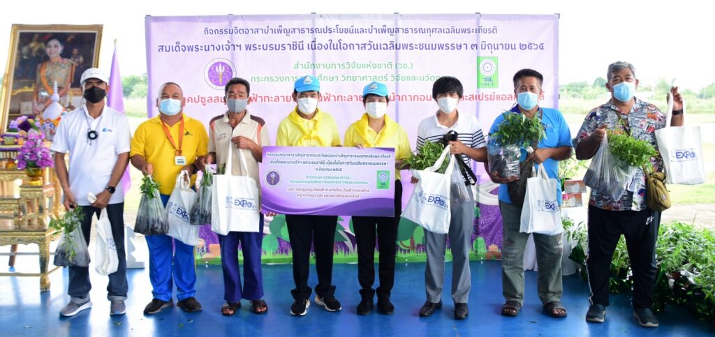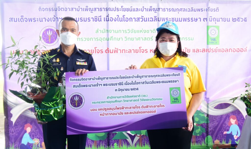 วันที่ 3 มิถุนายน 2565 : ดร.วิภารัตน์ ดีอ่อง ผู้อำนวยการสำนักงานการวิจัยแห่งชาติ (วช.) นำคณะผู้บริหาร เจ้าหน้าที่ สำนักงานการวิจัยแห่งชาติ (วช.) กระทรวงการอุดมศึกษา วิทยาศาสตร์ วิจัยและนวัตกรรม (อว.) จัดกิจกรรมโครงการจิตอาสากับการพัฒนาองค์กร เพื่อปลูกฝังคุณธรรม จริยธรรม และการมีจิตสาธารณะให้บุคลากร เพื่อบำเพ็ญสาธารณะกุศลเฉลิมพระเกียรติ สมเด็จพระนางเจ้าสุทิดา พัชรสุธาพิมลลักษณ พระบรมราชินี เนื่องในโอกาสวันเฉลิมพระชนมพรรษา วันที่ 3 มิถุนายน 2565 ณ ศูนย์วิจัยพัฒนาวิทยาศาสตร์เทคโนโลยีการบินและอวกาศ กองทัพอากาศ (ทุ่งสีกัน) ดอนเมือง กรุงเทพมหานคร