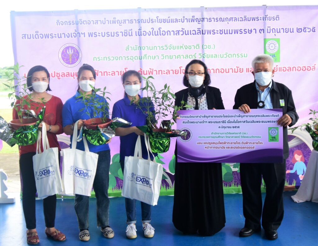 โดยได้นำผลิตภัณฑ์จากงานวิจัย ประกอบด้วย ผลิตภัณฑ์สเปรย์ฟ้าทะลายยโจร แคปซูลฟ้าทะลายโจร และต้นฟ้าทะลายโจรในแปลงปลูกคุณภาพ จากโครงการเพิ่มรายได้ให้แก่เกษตรกรคืนถิ่นจากสถานการณ์โควิด-19 โดยมหาวิทยาลัยธรรมศาสตร์ และหน้ากากอนามัย n-BreezeM02 โดยศูนย์นาโนเทคโนโลยีแห่งชาติ (นาโนเทค) สวทช. เพื่อให้ครัวเรือนและประชาชนในบริเวณทุ่งสีกันได้นำไปใช้ป้องกันโรคโควิด-19 ซึ่งผลิตภัณฑ์ได้รับการสนับสนุนการวิจัยและพัฒนานวัตกรรมฯ จาก (วช.)