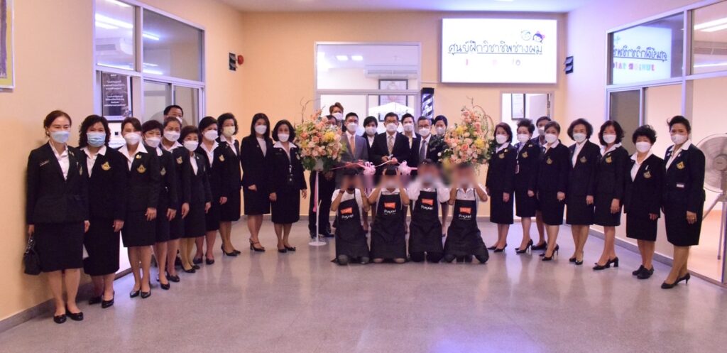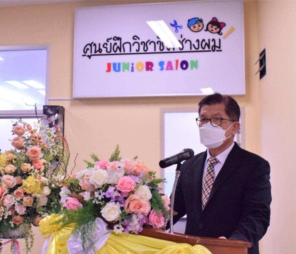 จากนั้น เวลา 10.00 น. นายประกอบ ลีนะเปสนันท์ อธิบดีผู้พิพากษาภาค 7 ช่วยทำงานชั่วคราวในตำแหน่งอธิบดีผู้พิพากษาศาลเยาวชนและครอบครัวกลาง เป็นประธานในพิธีเปิดโครงการฝึกทักษะวิชาชีพช่างทำผม สำหรับเด็ก เยาวชนและครอบครัว และเปิดศูนย์ฝึกวิชาชีพช่างผม “JUNIOR SALON” ในศาลเยาวชนและครอบครัวกลาง เพื่อให้เด็กหรือเยาวชน ที่สนใจได้ฝึกอบรมทักษะกับวิทยากรที่มีประสบการณ์ จากสถานประกอบการจริง โดยมี นางทิพย์วรรณ จักรเพ็ชร ผู้พิพากษาสมทบศาลเยาวชนและครอบครัวกลาง หัวหน้าโครงการฝึกทักษะวิชาชีพช่างตัดผม สำหรับเด็ก เยาวชนและครอบครัว (กล่าวรายงาน) คณะผู้พิพากษาสมทบ นายสมศักดิ์ ชลาชล นายกสมาคมวิชาชีพช่างทำผมไทย นายวิบูลย์ สมบูรณ์ศักดิกุล ประธานกรรมการบริหารบริษัท เอส.ซี.เสรีชัยบิวตี้ จำกัด และวิทยากร ร่วมเป็นเกียรติในพิธีเปิดโครงการ ณ ศูนย์ฝึกวิชาชีพช่างผม ชั้น 1 ศาลเยาวชนและครอบครัวกลาง