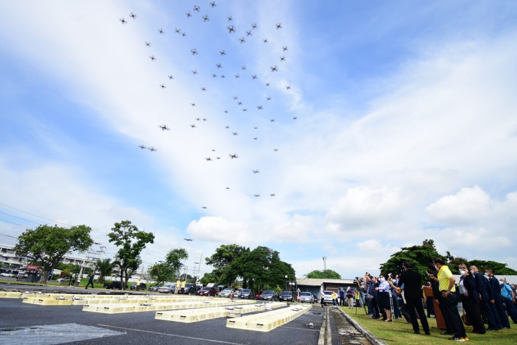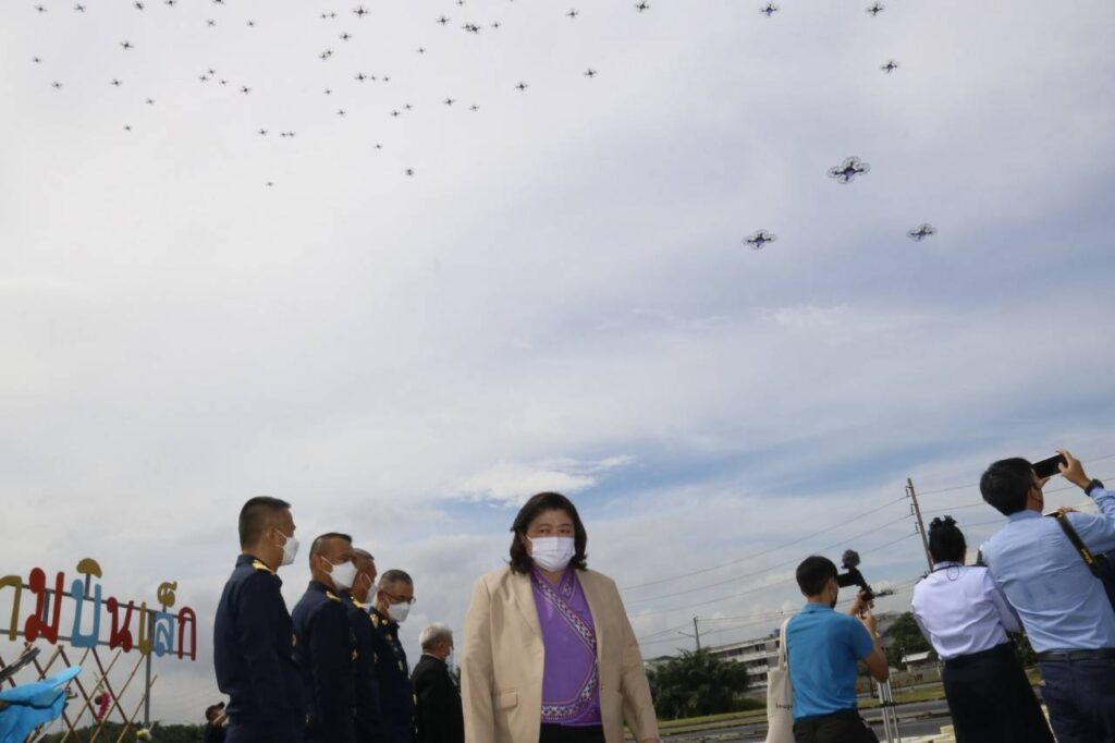 โดยมี ดร.วิภารัตน์ ดีอ่อง ผู้อำนวยการสำนักงานการวิจัยแห่งชาติ (วช.) เป็นประธานในพิธีเปิดการอบรมฯ และมี พลอากาศตรีสรรพชัย ศิลานิล รองผู้อำนวยการศูนย์วิจัยพัฒนาวิทยาศาสตร์เทคโนโลยีการบิน และอวกาศ กองทัพอากาศ,นาวาอากาศเอก รณชิต วิจิตร นายทหารปฏิบัติการประจำกรมกำลังพลทหารอากาศ ช่วยราชการศูนย์วิจัยพัฒนาวิทยาศาสตร์เทคโนโลยีการบินและอวกาศ กองทัพอากาศ และผู้ทรงคุณวุฒิ (วช.) เข้าร่วมในพิธีเปิดการอบรมฯ ด้วย หลังจากพิธีเปิดกิจกรรมฯ ได้มีการโชว์บินโดรนแปรอักษร จำนวน 300 ลำ อีกด้วย