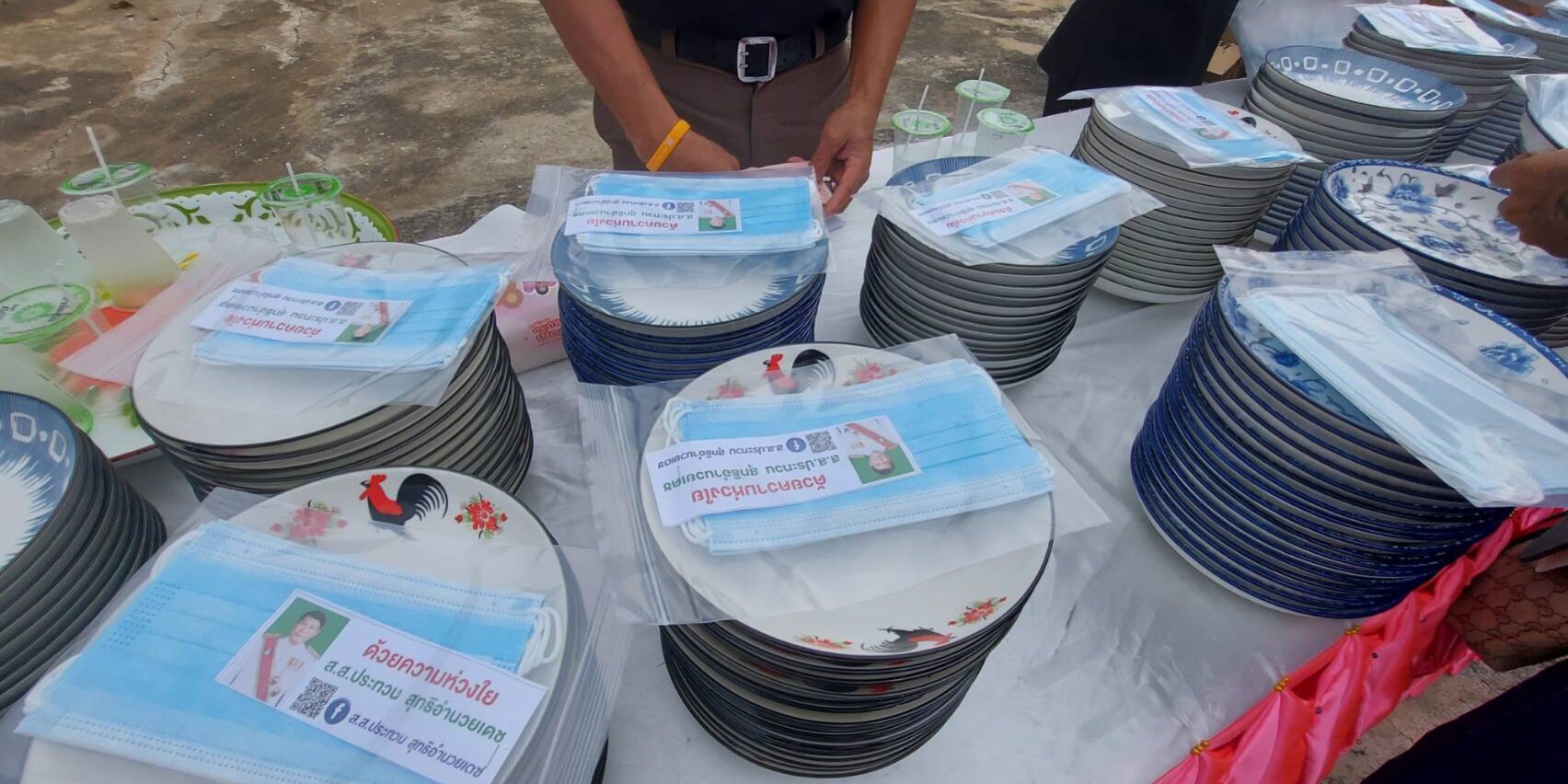 “ทั้งนี้ ต้องขอขอบคุณ เพื่อนๆที่สนับสนุน หน้ากากอานามัย เพื่อนำมาแจกให้กับผู้ที่มาร่วมงานด้วย นะครับ”