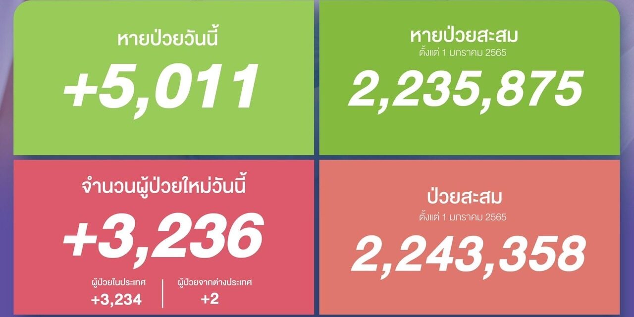 หายป่วยสะสม 2,235,875 ราย (ตั้งแต่ 1 มกราคม 2565)