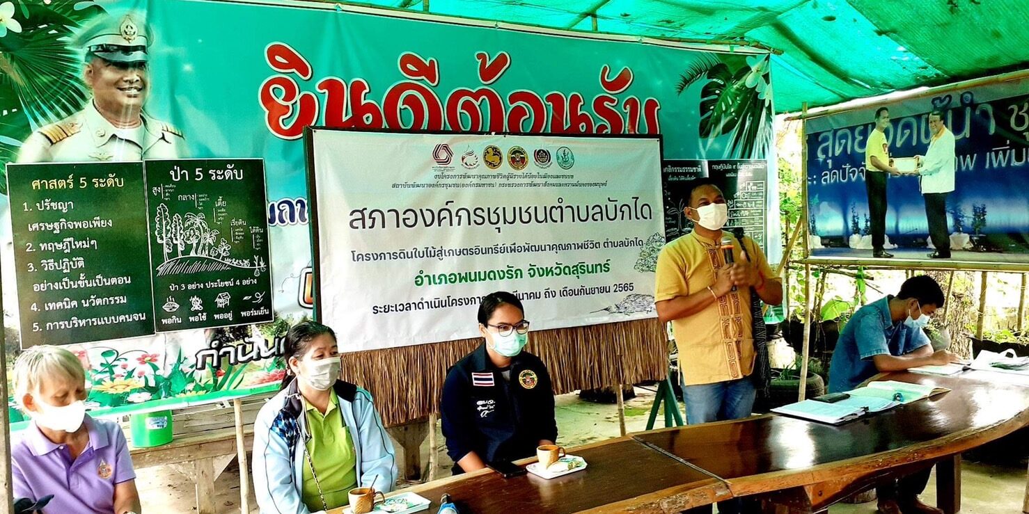 . ทั้งนี้ นายวีรวัติ เสาะพบดี ประธานชมรมกำนันผู้ใหญ่บ้าน อ.พนมดงรัก กล่าวว่า “โครงการดินใบไม้สู่เกษตรอินทรีย์เพื่อพัฒนาคุณภาพชีวิต ต.บักได ครั้งนี้ ได้รับการจัดสรรงบประมาณจากกลุ่มภาคีเครือข่าย พอช. โครงการพัฒนาคุณภาพชีวิตผู้มีรายได้น้อยในการสนับสนุนงบประมาณการจัดกิจกรรมเพื่อให้เกิดความรู้ด้านการทำงานร่วมกับภาคีเครือข่าย ซึ่งตนเชื่อว่ากระบวนการต่างๆ ประชาชน เกษตรกร ที่เข้าร่วมจะสามารถนำไปปรับใช้ให้เกิดประโยชน์เพื่อช่วยลดต้นทุนในการผลิตผลผลิตทางการเกษตรต่อไป”